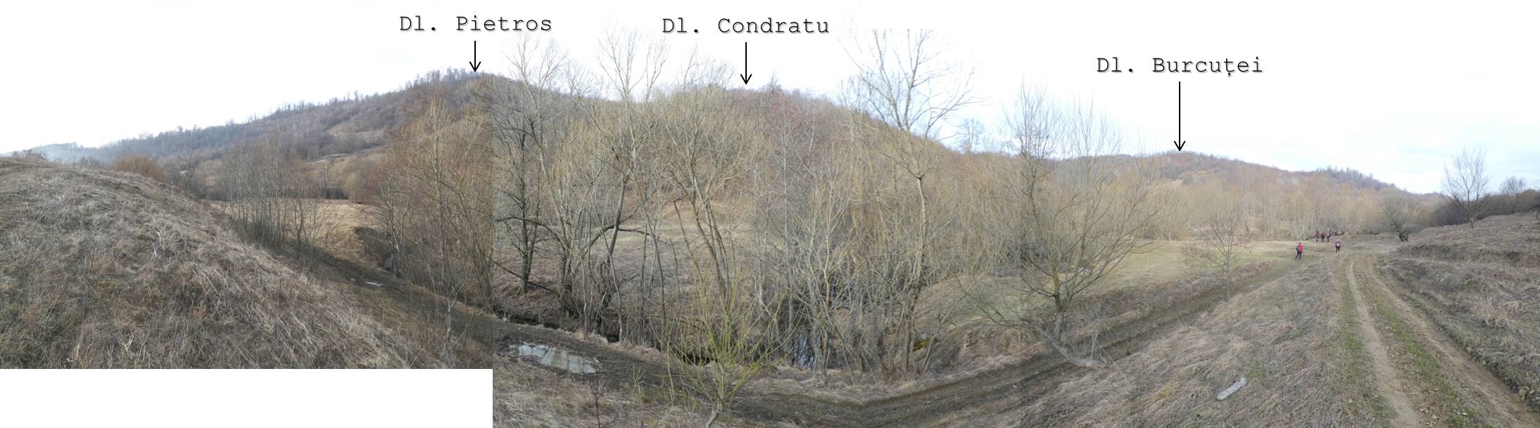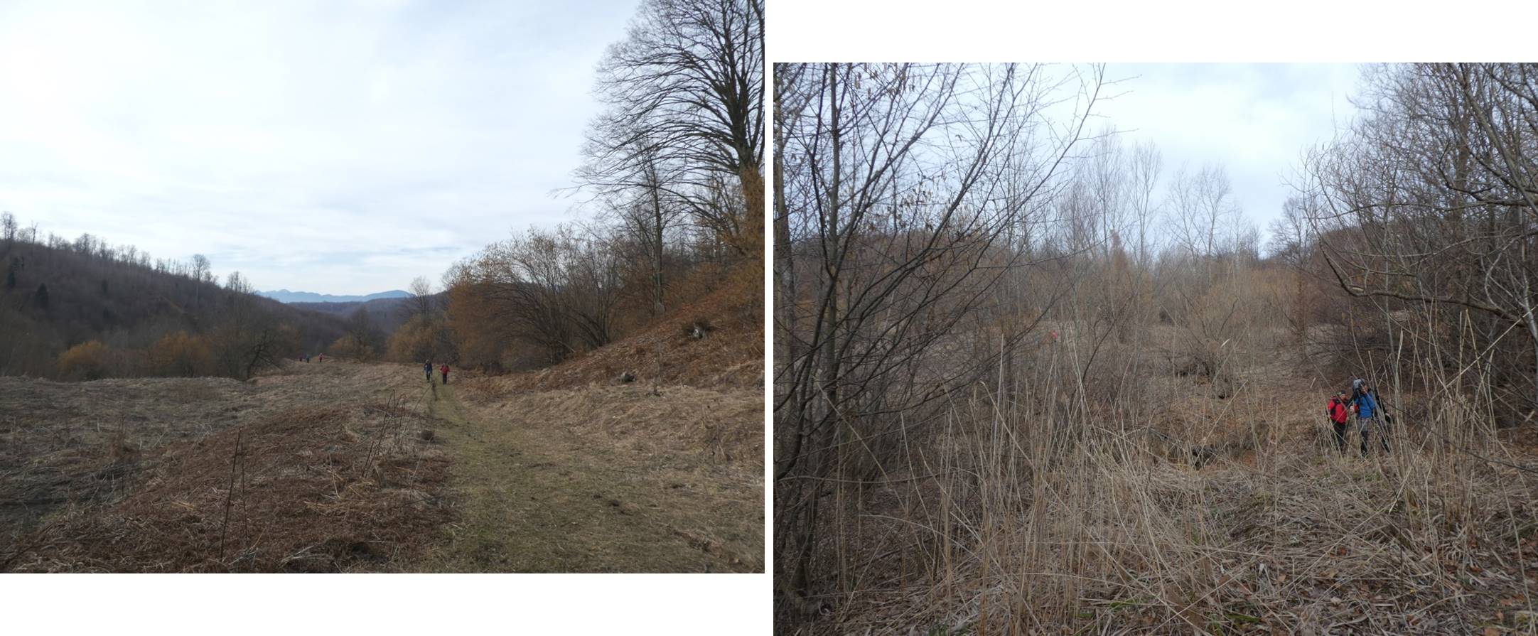 Traversăm, coborând, un șir de poieni lungi, de culme; suntem pe interfluviul Lărguța-Dălmaciu (>Cremenețu).