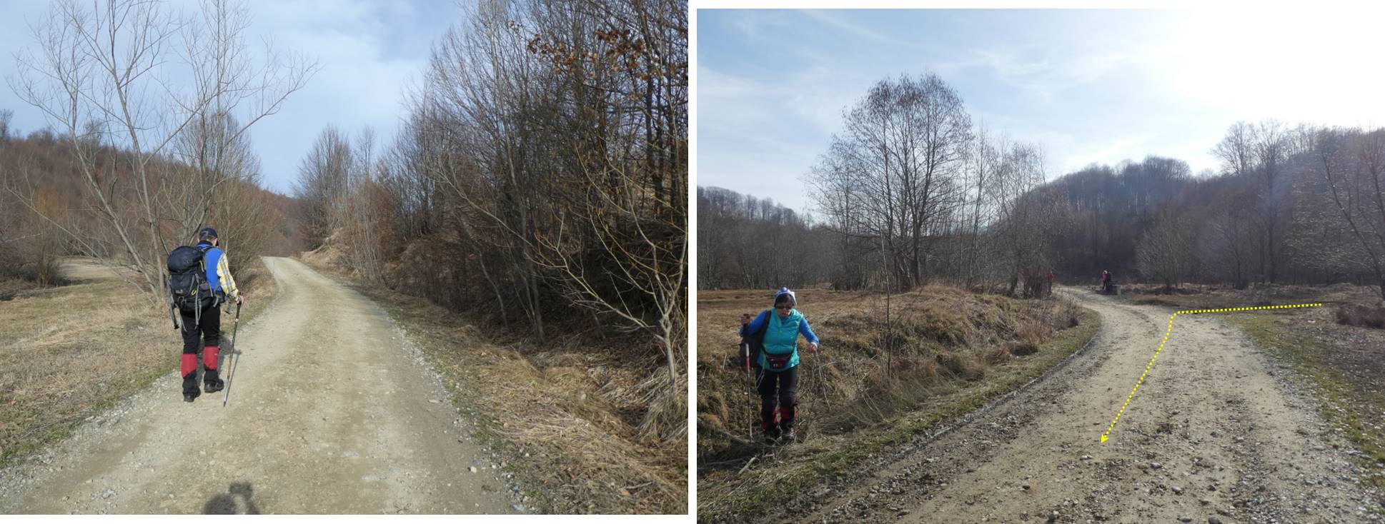 … până la prima intersecție (46.085192N, 26.701924E, 549 m alt.) cu un drumeag ce pleacă spre dreapta, …