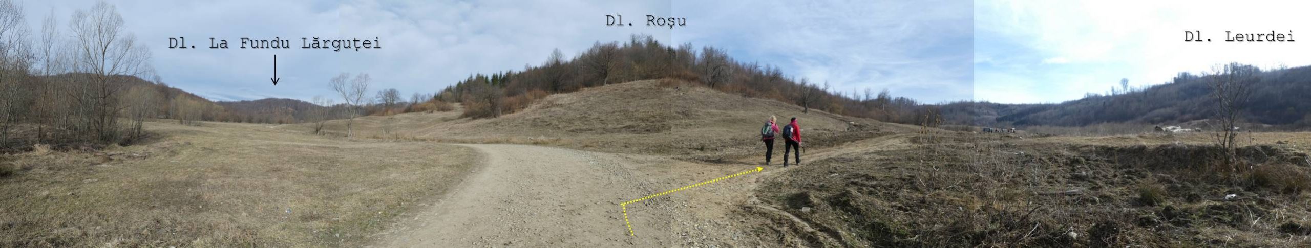 Tendința generală de coborâre a culmii continuă încă vreo 45 de minute, până într-o zonă aflată foarte aproape de valea Lărguței. Trebuie să fim din nou atenți la marcajul silvic, pentru că drumul va încerca să ne coboare în valea Lărguței depărtându-se de coama culmii; așa că, atunci când ne va fi clar că drumul chiar o ia la vale spre Lărguța, vom căuta în dreapta linia culmii și “H”-urile de pe ea. Cu o … clipă înainte de a ajunge în punctul cel mai de jos al interfluviului putem vedea, după alura culmii, că urmează curând să recâștigăm altitudinea pierdută în ultima oră și jumătate !