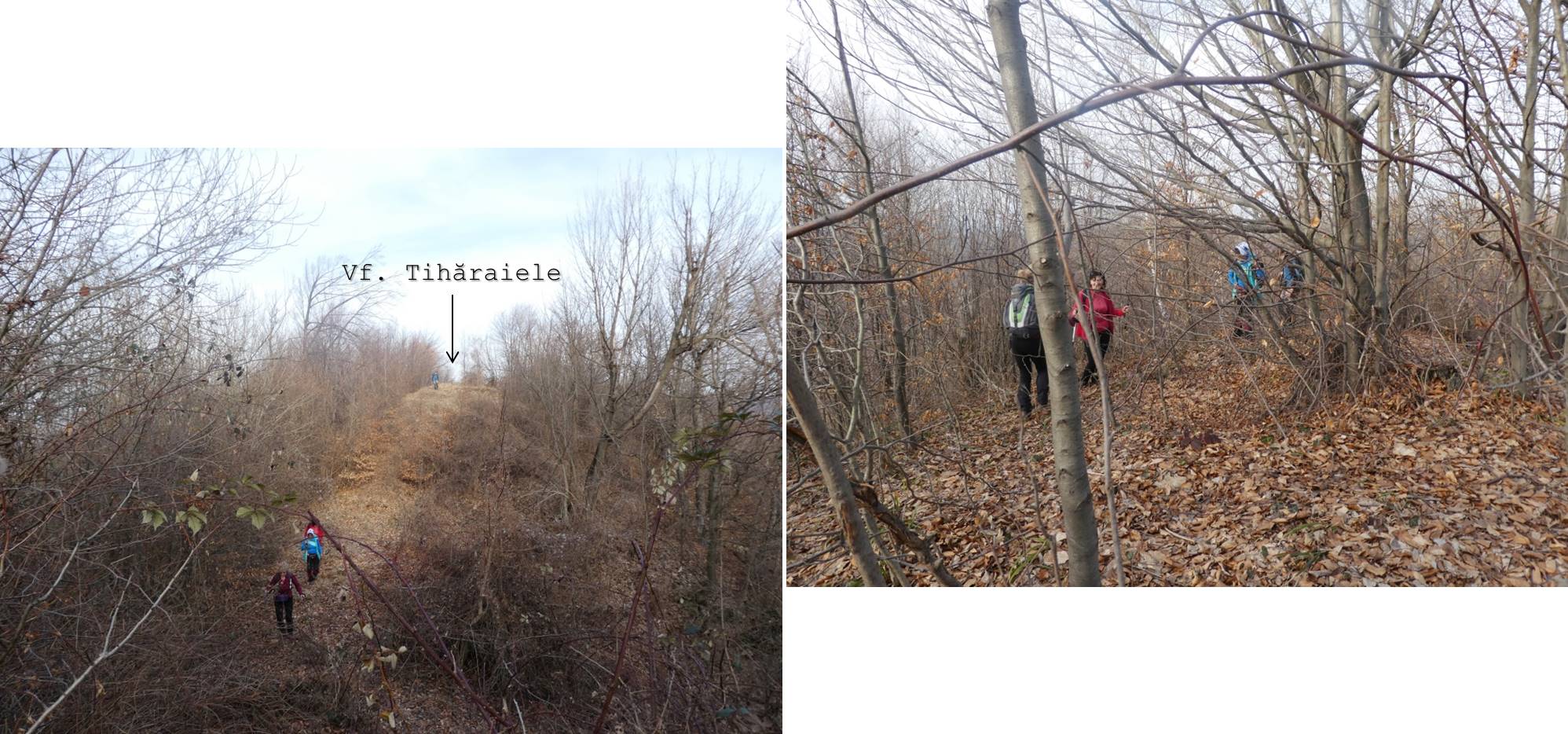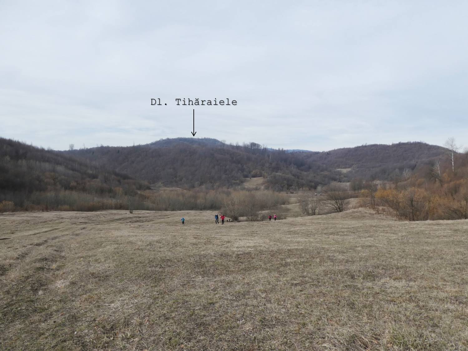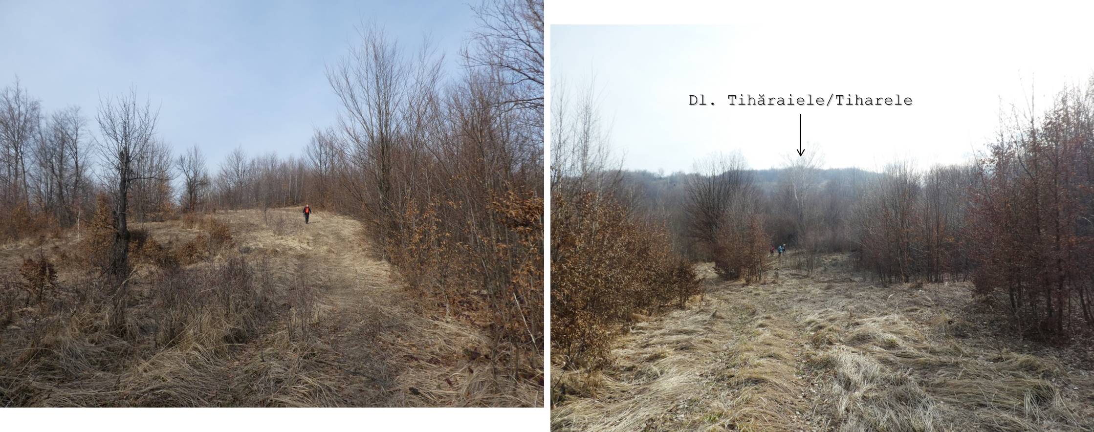 Traseul continuă … întorcându-ne în punctul unde am atins culmea Tihăraielor, iari de aici, pe culme, spre est; după vreo 5 minute traversăm un drumeag transversal pe direcția culmii, șaua prin care trece marcând capătul Dealului Tihăraiele.