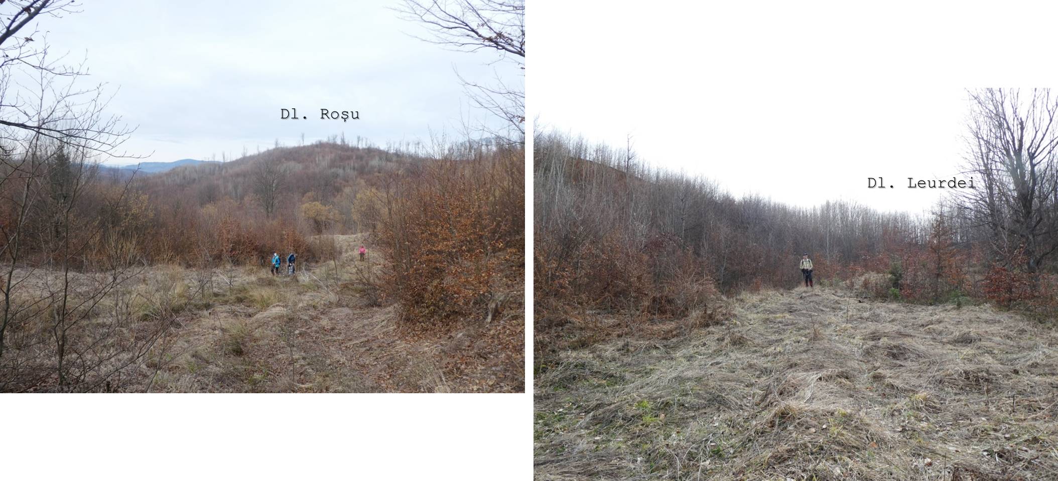 … ajungând în punctul de convergență al văiugilor de obârșie a Leurdei, lăsăm drumul bun pe care am venit din care pleacă două ramuri – spre stânga și înainte -, cotind cu 90 de grade spre dreapta apucând-o pe urmele unui fost drum de tractor cam înțelenit de nefolosință.