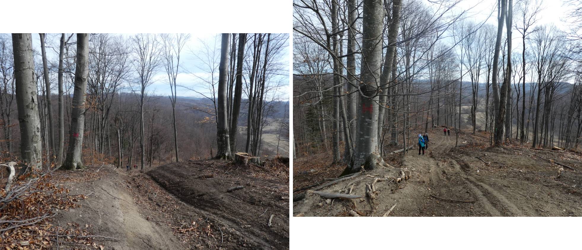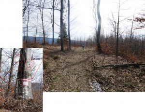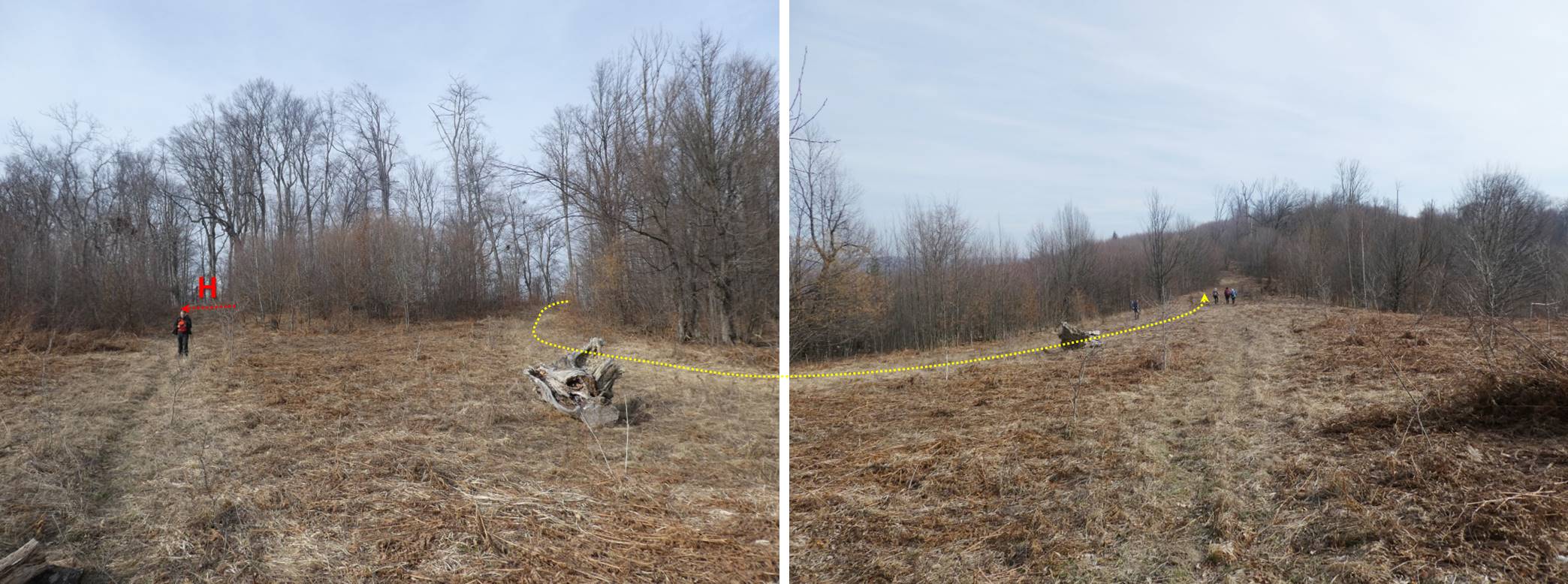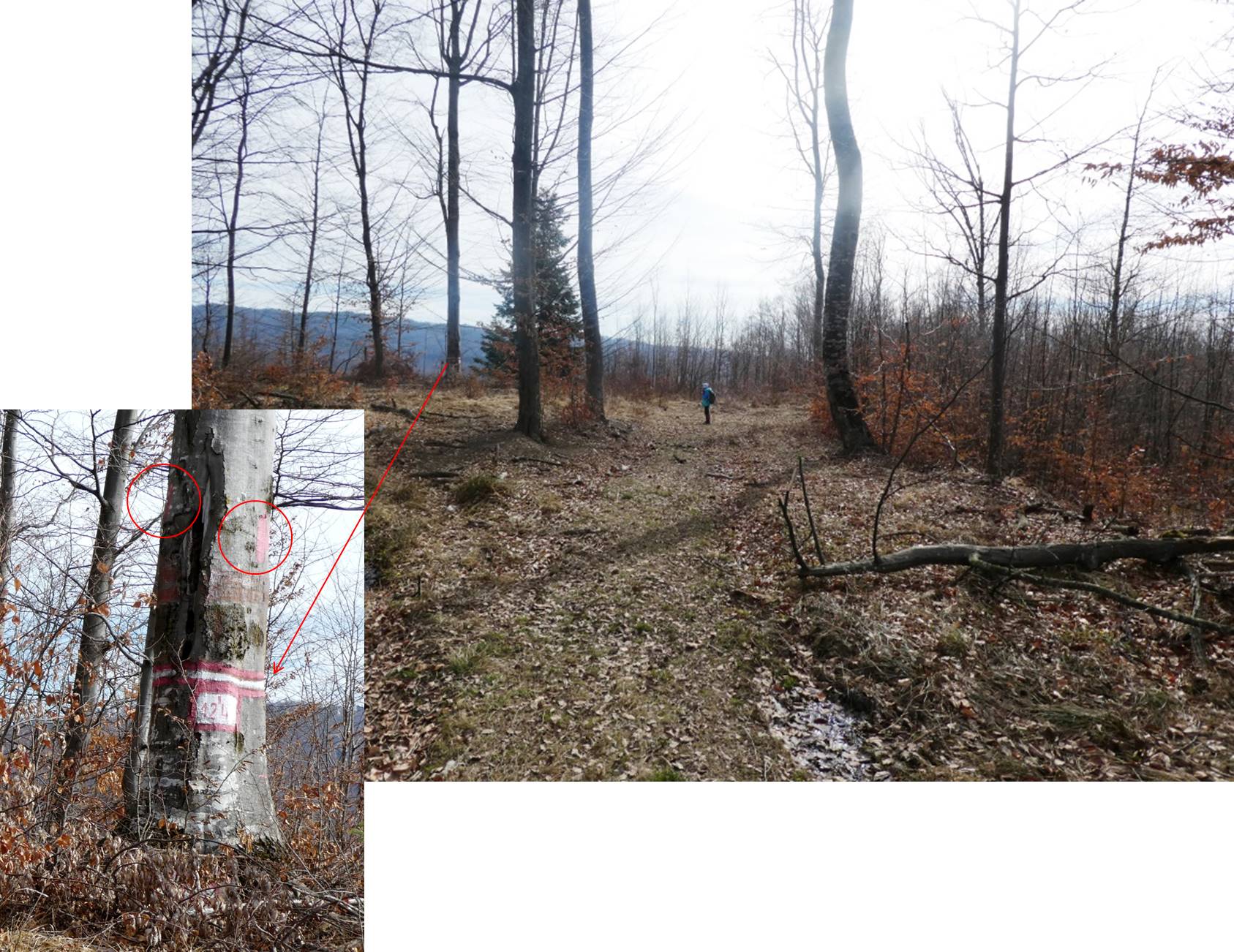 … ! Din acest punct vom fi ghidați de marcajul silvic al hotarului dintre două ocoale, realizat cu “H”-uri roșii !