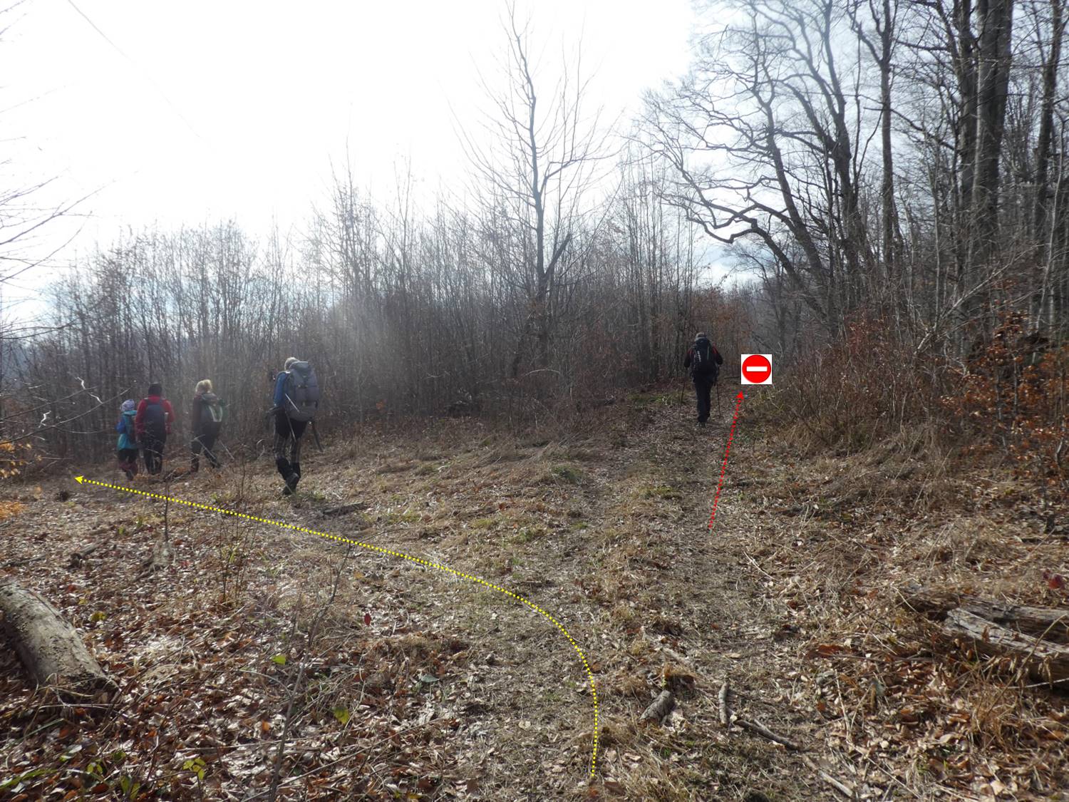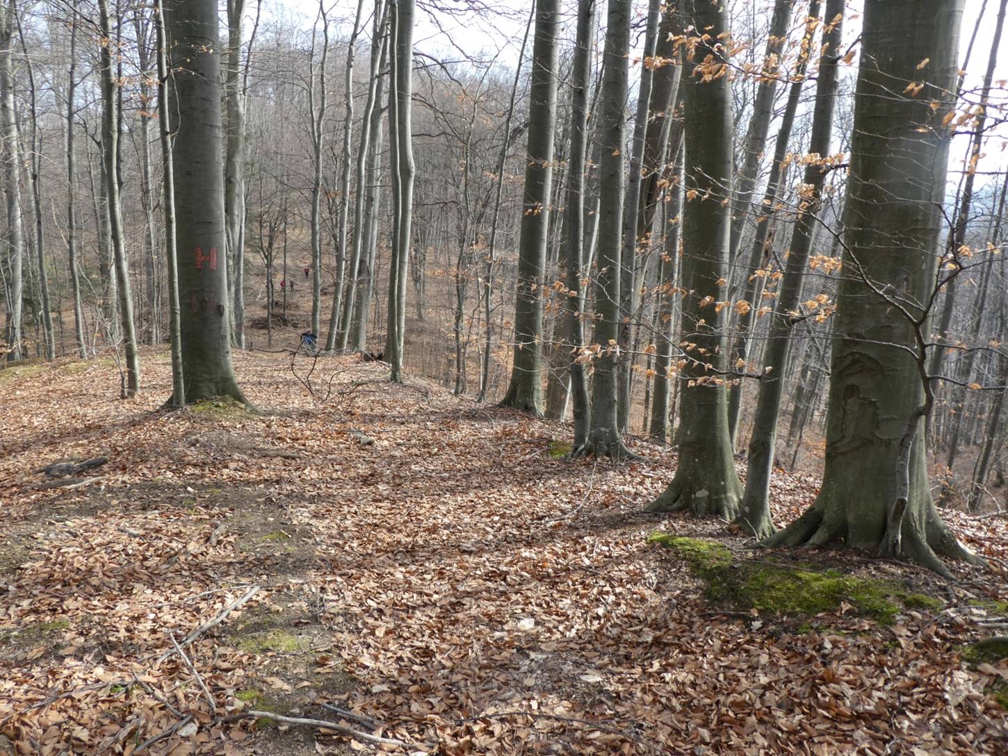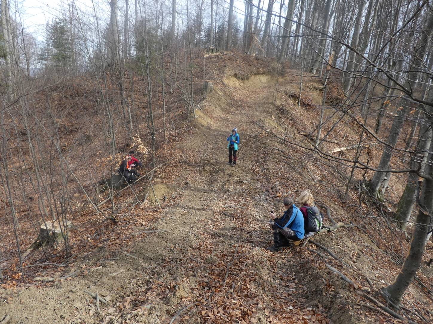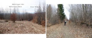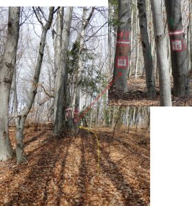 … ! Din acest punct vom fi ghidați de marcajul silvic al hotarului dintre două ocoale, realizat cu “H”-uri roșii !