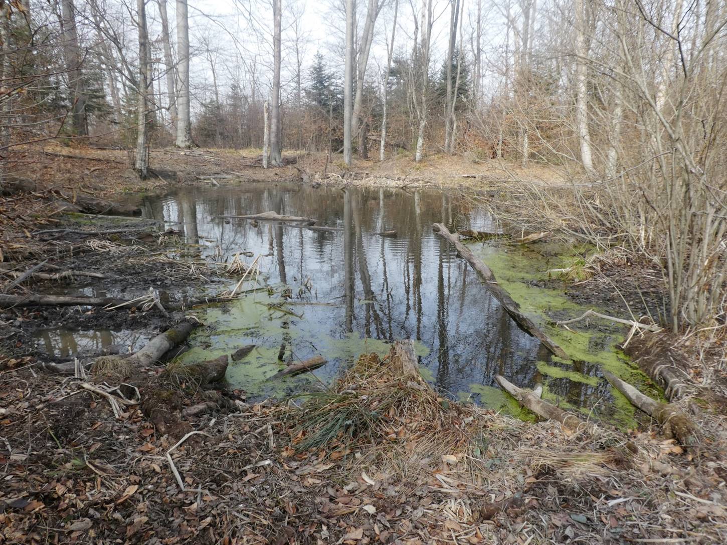 Drumul pe care am apucat ne conduce, după ce traversează o margine de pădure, într-o poiană în pantă, în marginea căreia … zace un lăculeț ! Putem merge pe marginea poienii, pe potecile de oi de pe muchia de deasupra ei care ne duc, la ieșirea (spre dreapta) din poiană la un drum forestier ce răzbate, mai sus, într-o altă poiană în pantă !