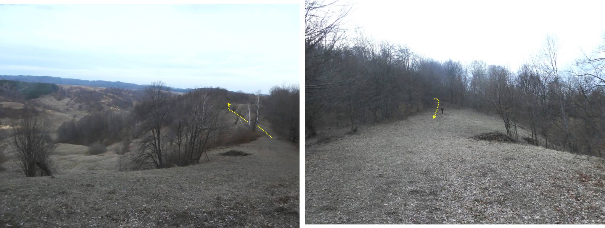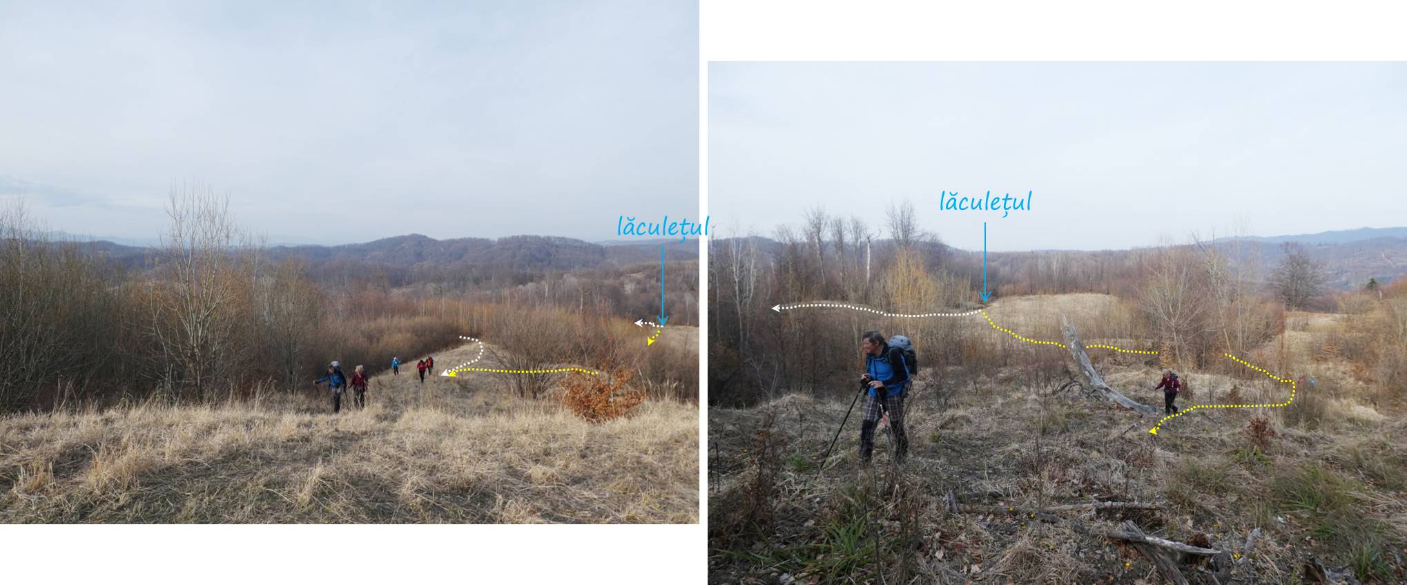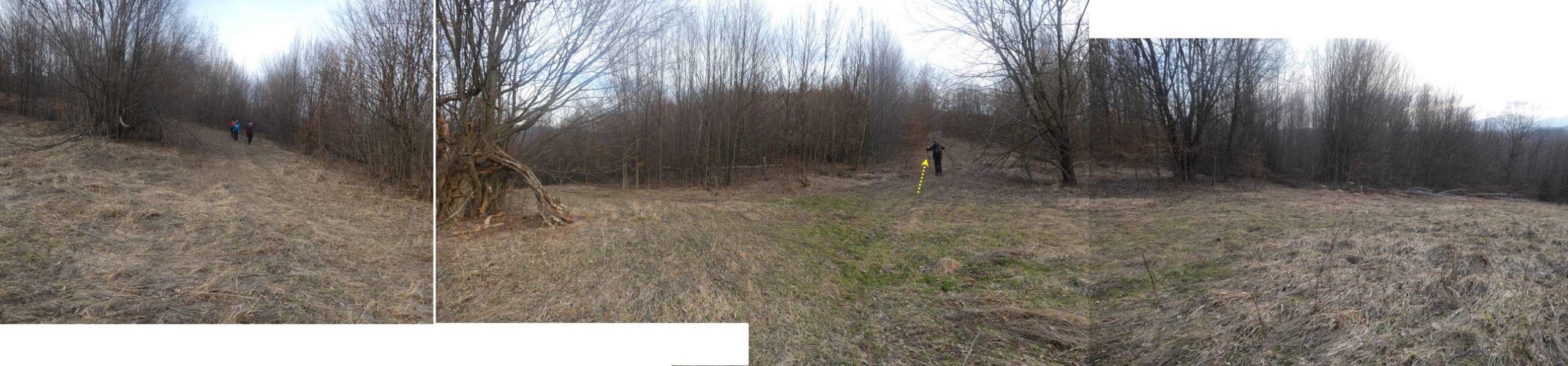 Noi am ajuns acolo traversând prima poiană spre stânga și suind apoi pe valul unei vechi alunecări pentru a răzbate apoi în cea de a doua poiană.