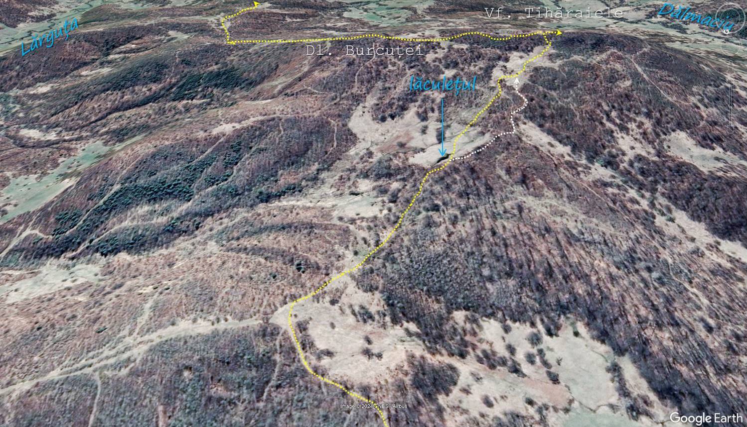 Traseu (24 februarie 2024): GURA VĂII (Gura Lărguței) – Biserica pe stil nou [Mormântul lui Moș Ion Roată] – Valea Lărguței – Valea Leurda – Dl. Roșu – La Vârful Fețișoarei – La Fundu Lărguței – La Lacu Văcuței – Dl. Văcuței – Dl. Tihăraiele/Tiharele – Dl. Burcuței – Dl. Condratu – Dl. Pietrosu – Valea Lărguței – Gura Lărguței.