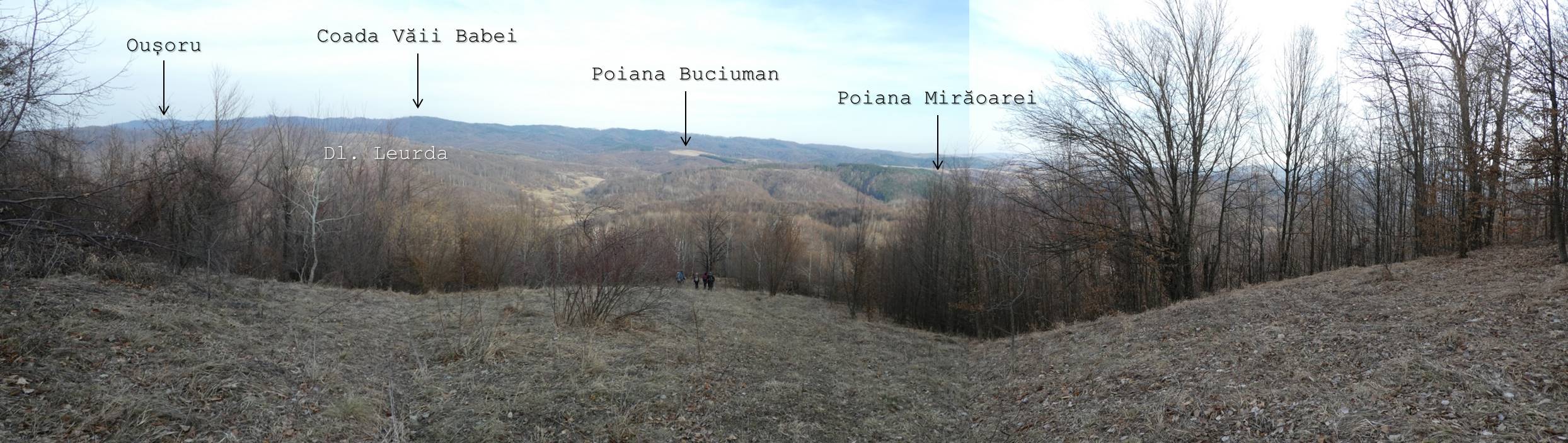 Urmează o lungă poiană cu belvedere din capătul căreia nu schimbăm direcția, chiar dacă drumul mai circulat ne trage spre dreapta.
