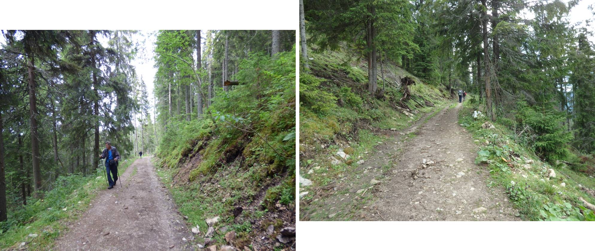 Urmăm un drum forestier până ce ne apare în față o poartă la care nu ajungem însă, căci cotim, suind, spre dreapta; …