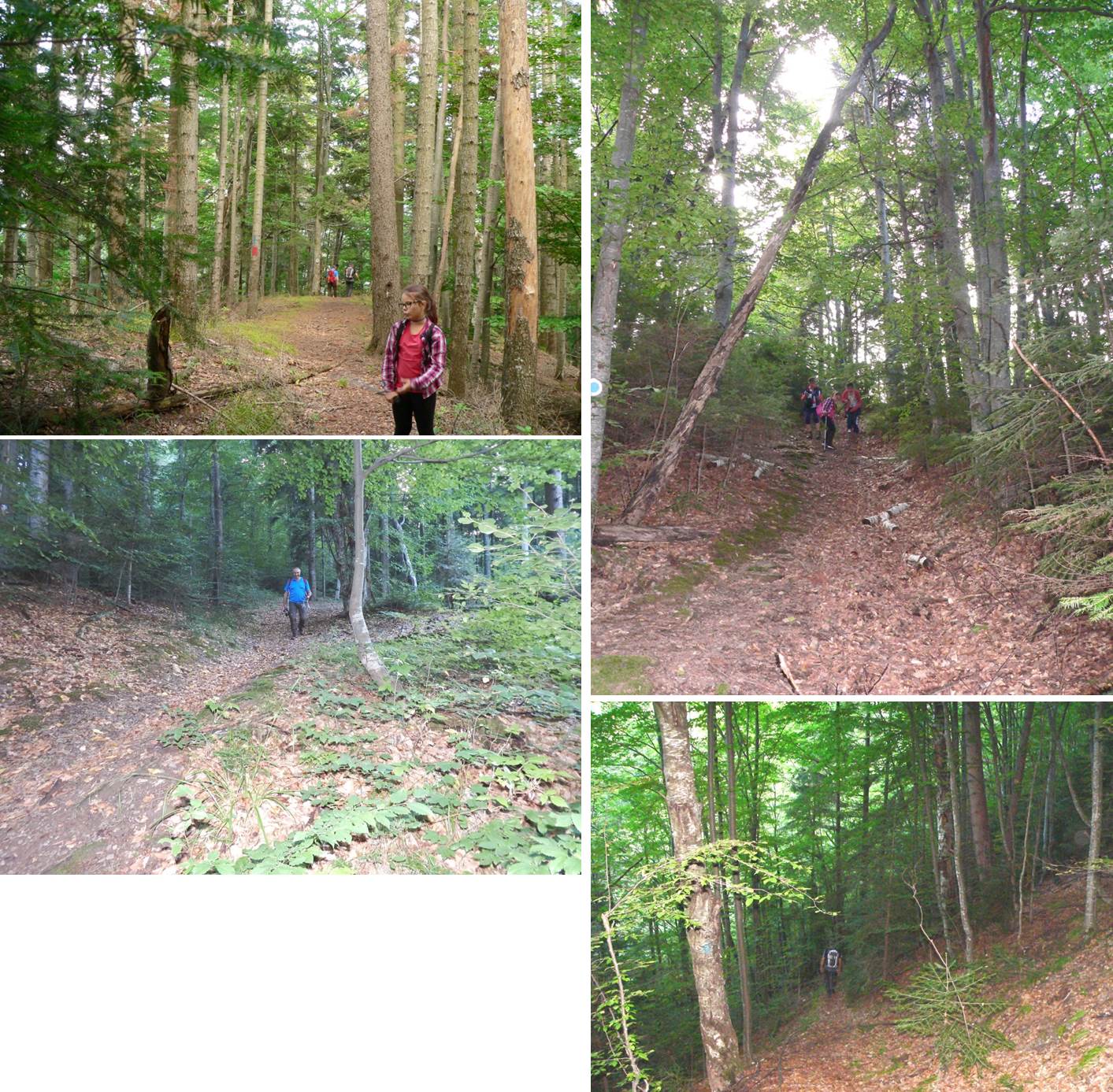 De pe Culmea Tisarului, coborâm drastic – 260 m, de-a lungul a 750 m, în 27′ – pe Piciorul Tisarului – până sub Vârful Râpa Roșie, de unde schimbăm cu 90 de grade direcția, …