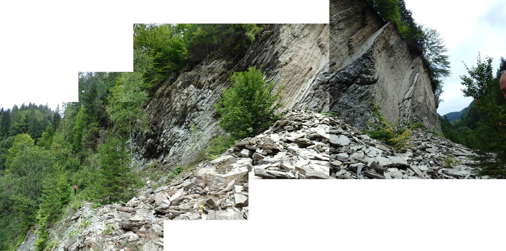 … ocolind, astfel, un afloriment de strate centimentrice redresate aproape la verticală !