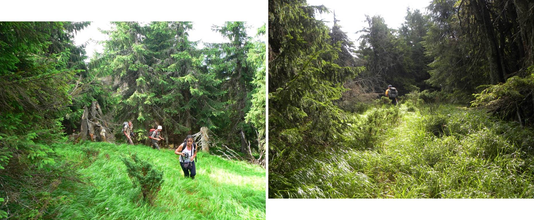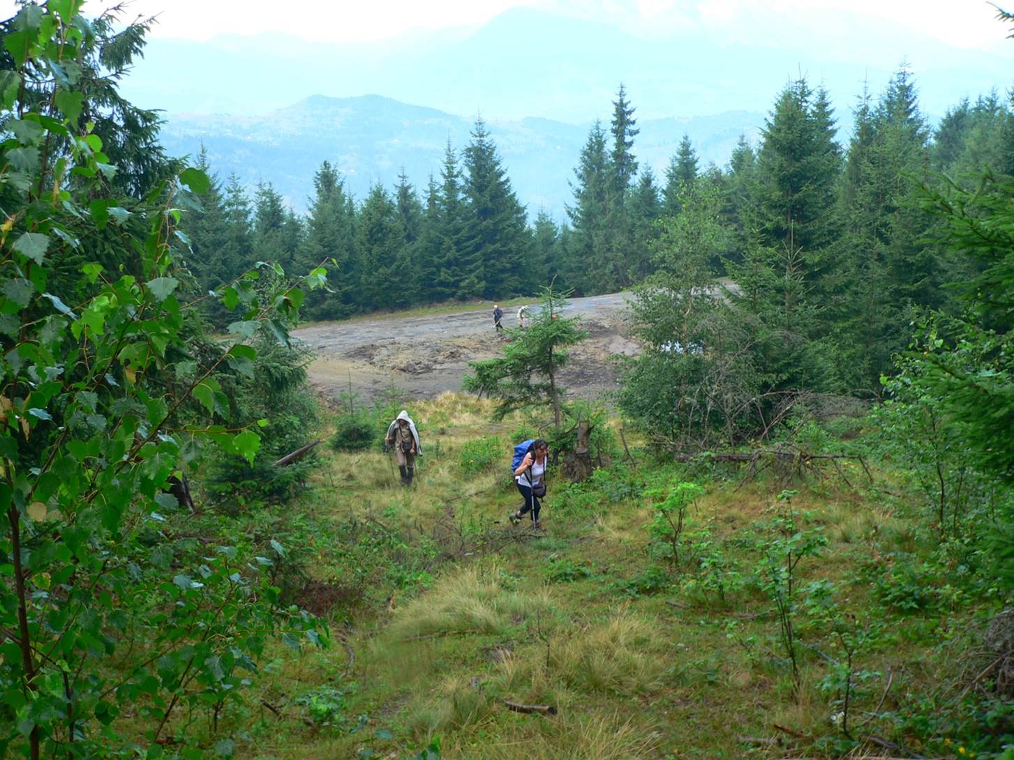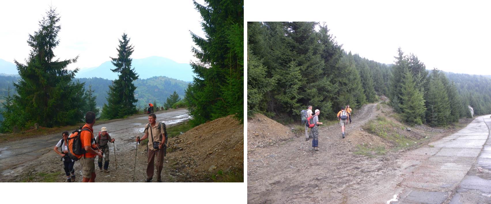 … și suim, cam pieptiș, pe urmele unui vechi drum de exploatare estompat de vegetația sălbatică.