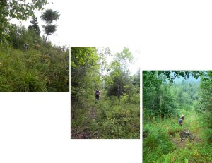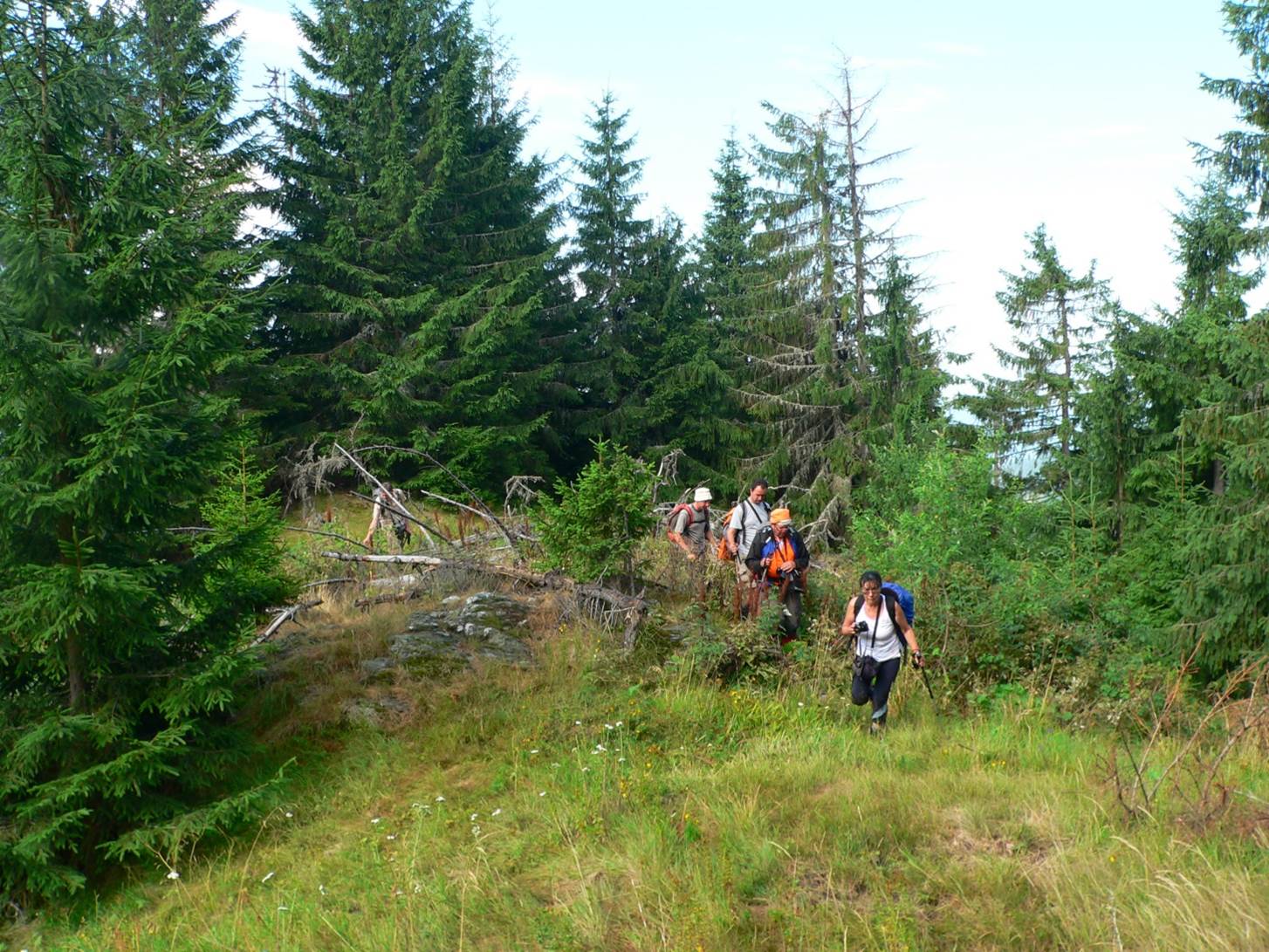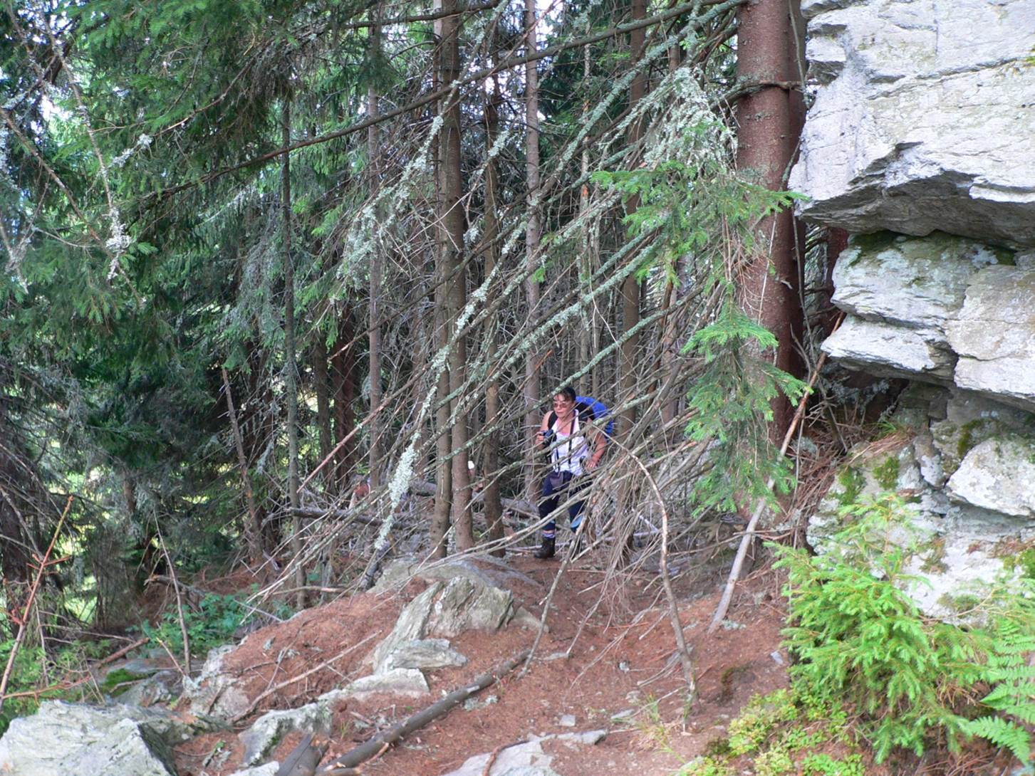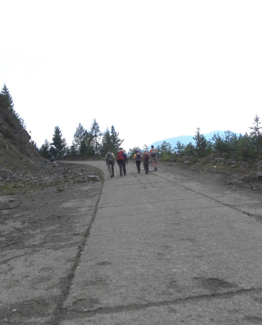 … și suim, cam pieptiș, pe urmele unui vechi drum de exploatare estompat de vegetația sălbatică.
