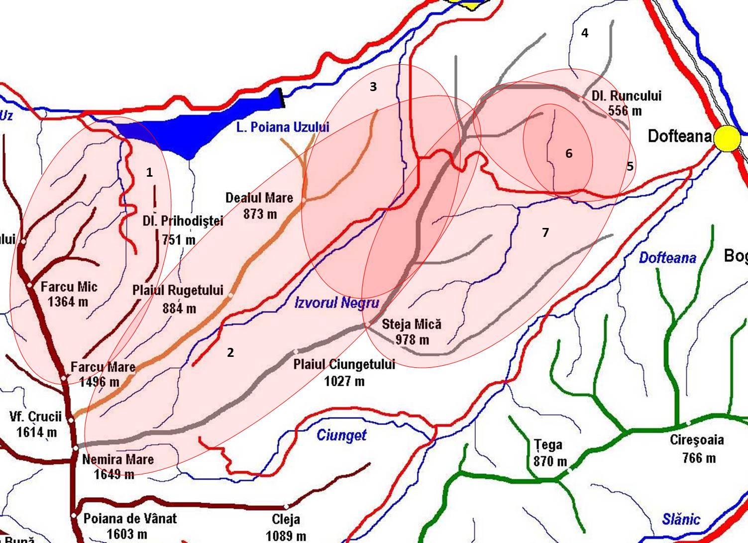 7. Dofteana – Dl. Angheluş – Dl. Bobotar – Dl. Baba Rea – Plaiul Ciunget – Culmea Stega Mică – Dealul La Pârloage – Dofteana (**) (***)