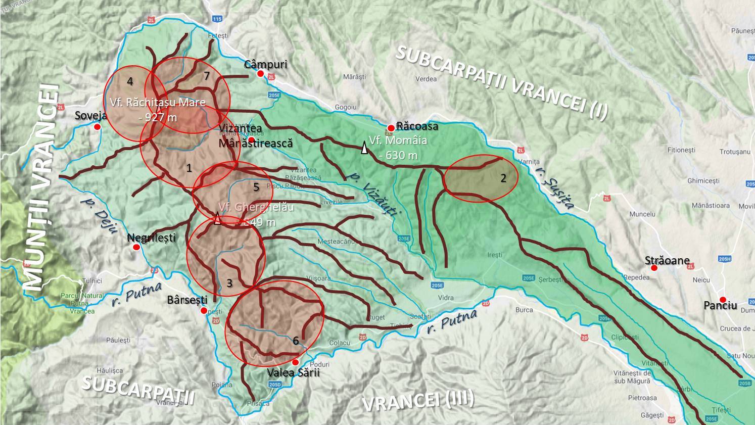 În raport cu precizările de mai sus, am împărțit Subcarpații Vrancei în cinci sectoare:
