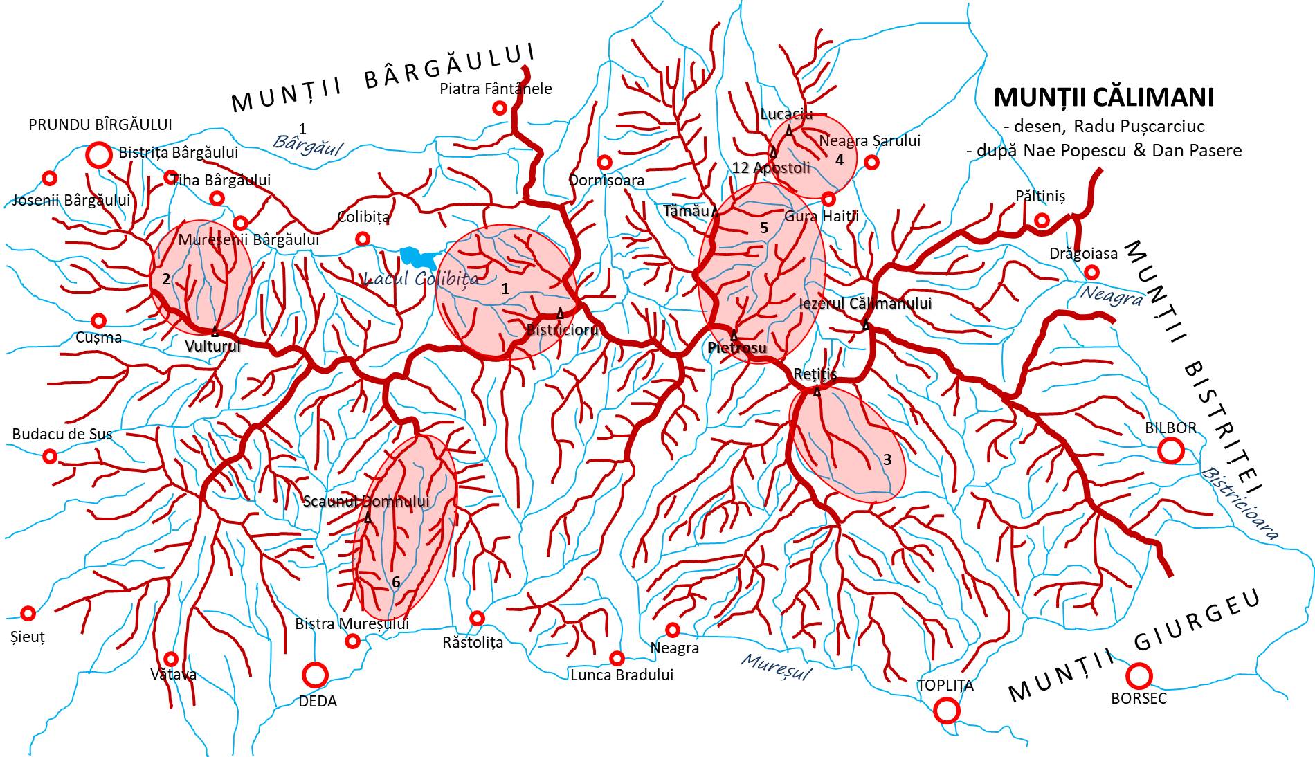 2. Bistriţa Bârgăului – Valea Pietroasa – Valea Pietroasa de Jos – Muntele Paltinul – Muntele Cuşma – Muntele Vulturul (1501 m) – Dealul Negru – Şaua Stegii – Valea Stega – Bistriţa Bârgăului (*)