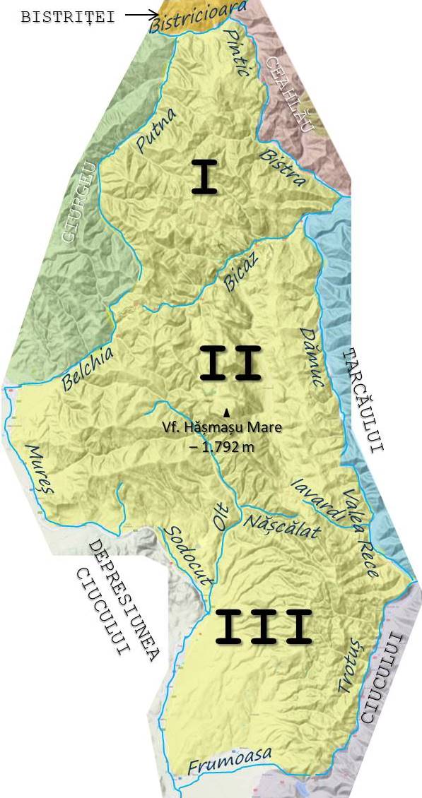 Pentru o mai ușoară sistematizare a traseelor parcurse de noi în Munții Hășmaș, le-am împărțit arealul în trei regiuni: