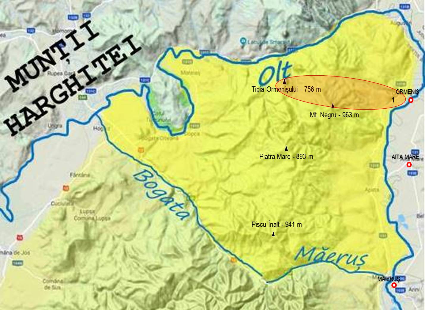 1. ORMENIȘ – Dl. Răchitei – Dl. Negru – Tipia Ormenișului – Pe Șes – Muchia de Jos – ORMENIȘ (**)