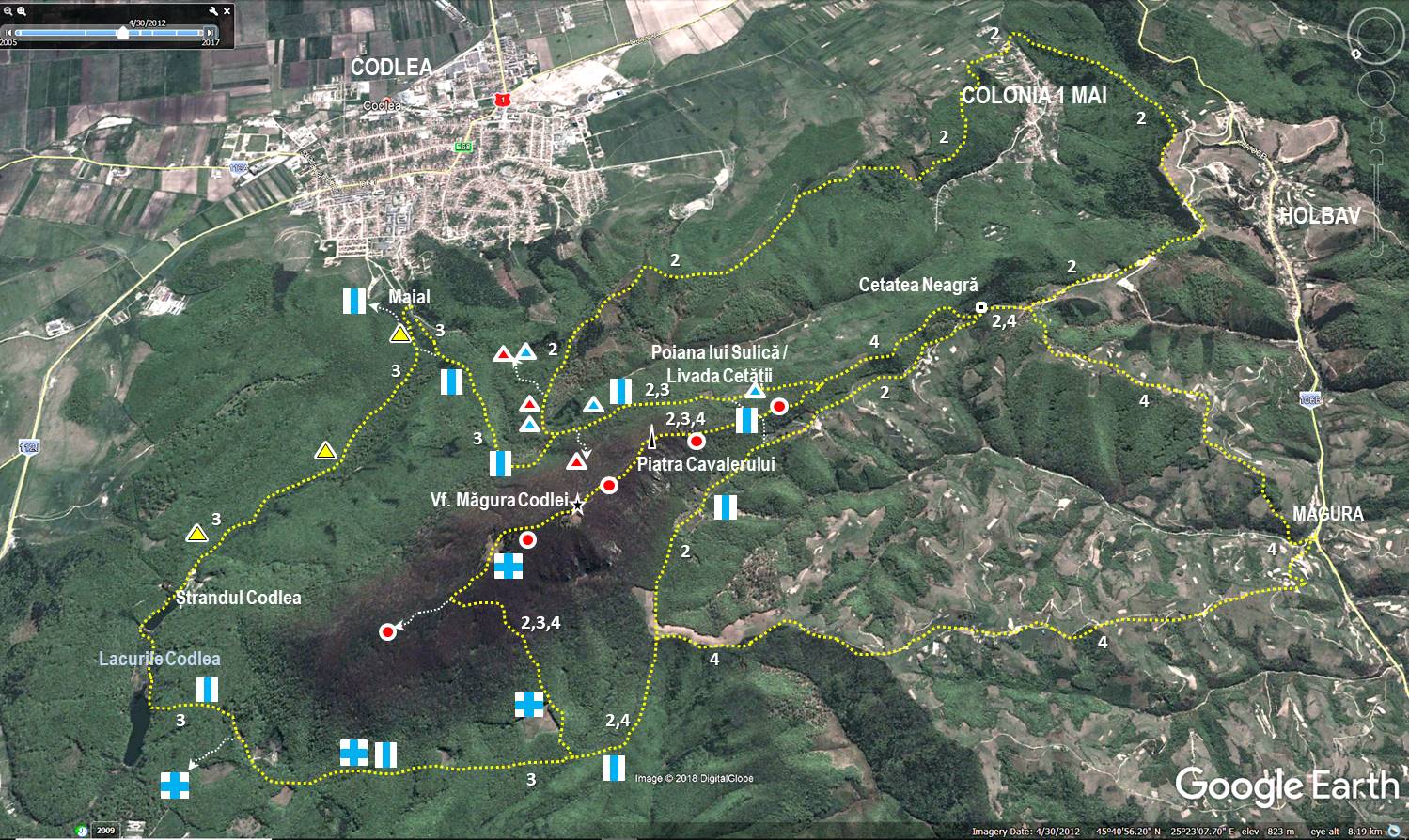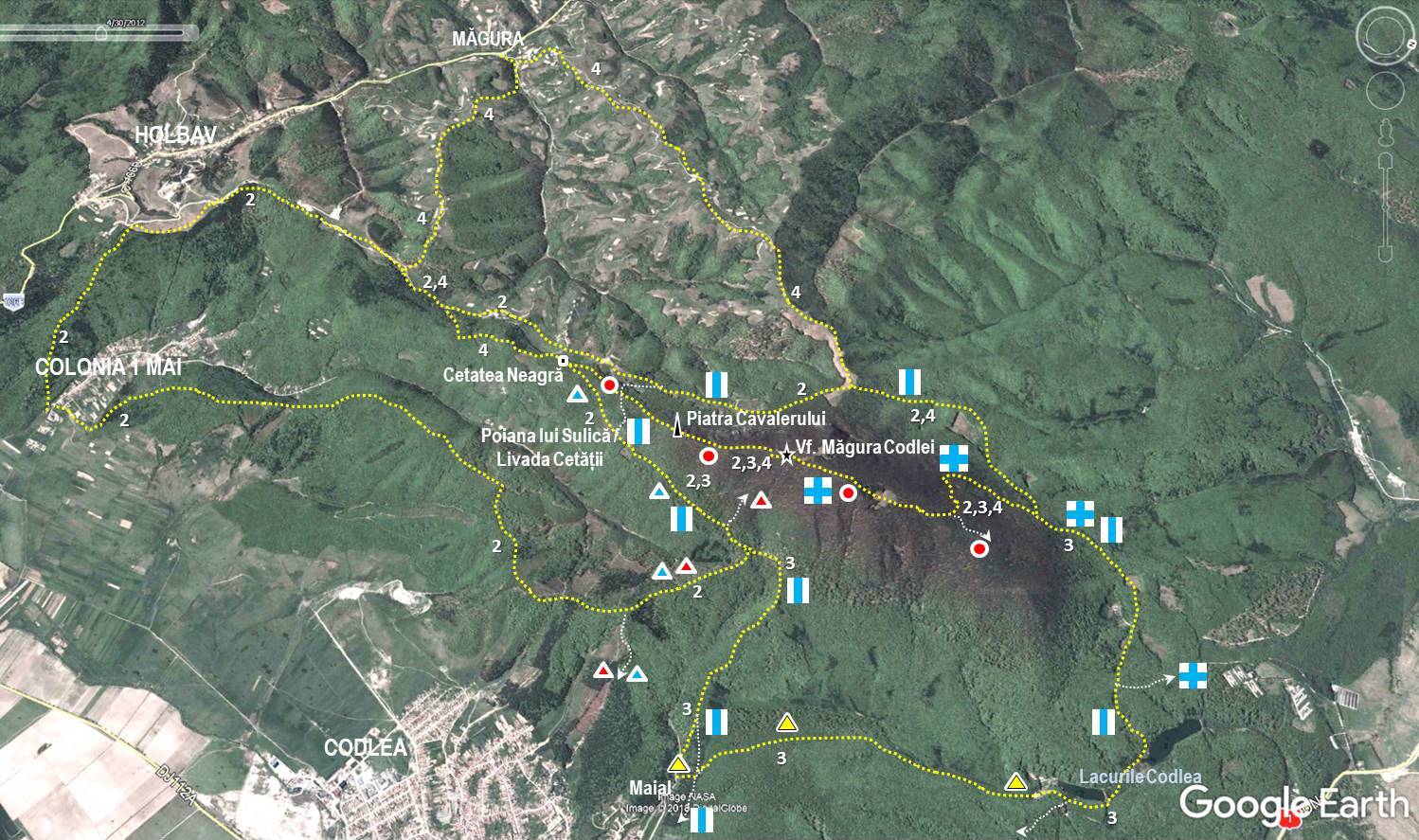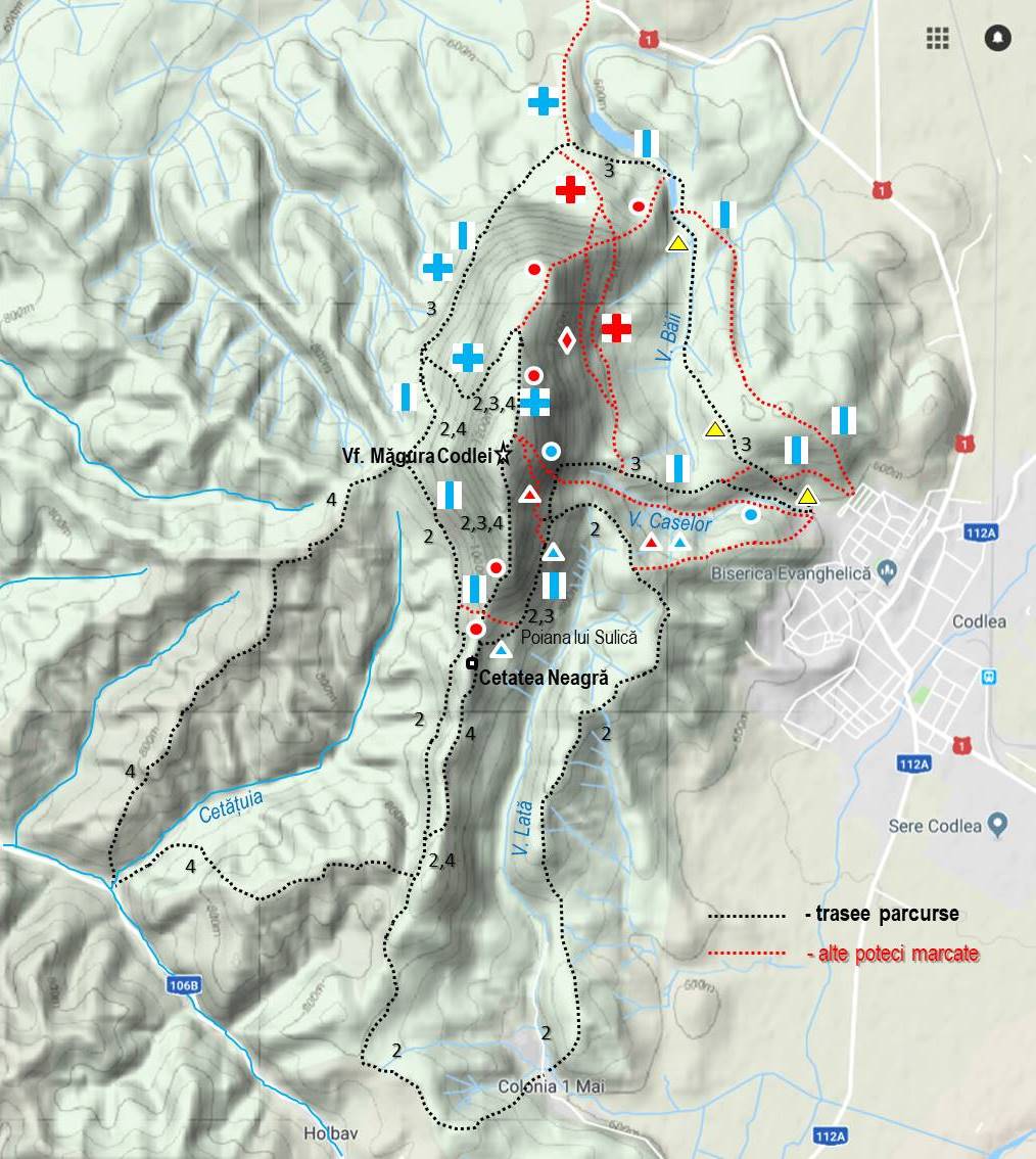 Observație: “Descifrarea” rețelei de marcaje ce acoperă Măgura Codlei a fost posibilă datorită informațiilor de pe blogul magiamuntelui.blogspot.com !