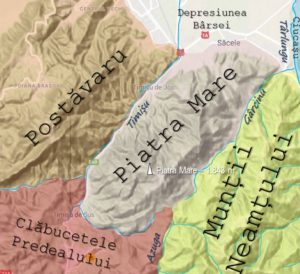 1. Gura Mușatului – Muchia Andir – Vf. lui Andrei – Poiana Pietricica – Vf. Piatra Mare – Piatra Mică – Peștera de Gheață – Mt. Chiva – Mt. Bechia – Valea Mușatului – gura Mușatului (**)
