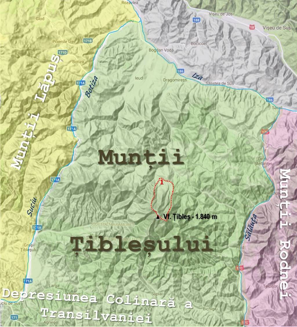 1. Dragomirești (Cabana Sfundău) – Valea Sfundău – Poiana Pleșcuț – Piciorul Mesteacănului – Vf. Bran – Vf. Țibleș – Vf. Arcer – Preluca Tomnatecului – Cabana Sfundău (**)