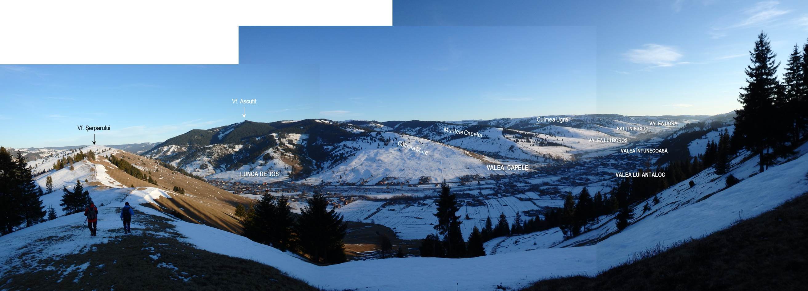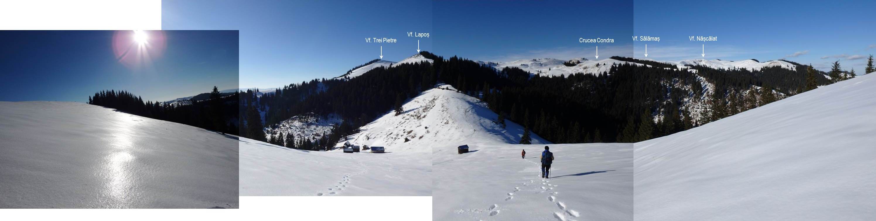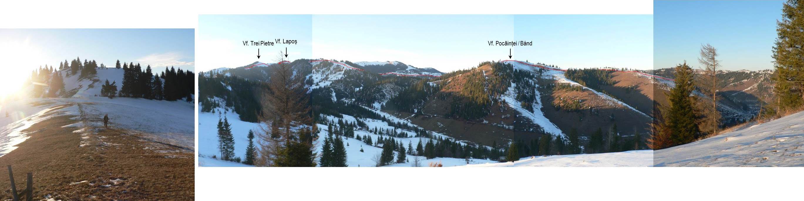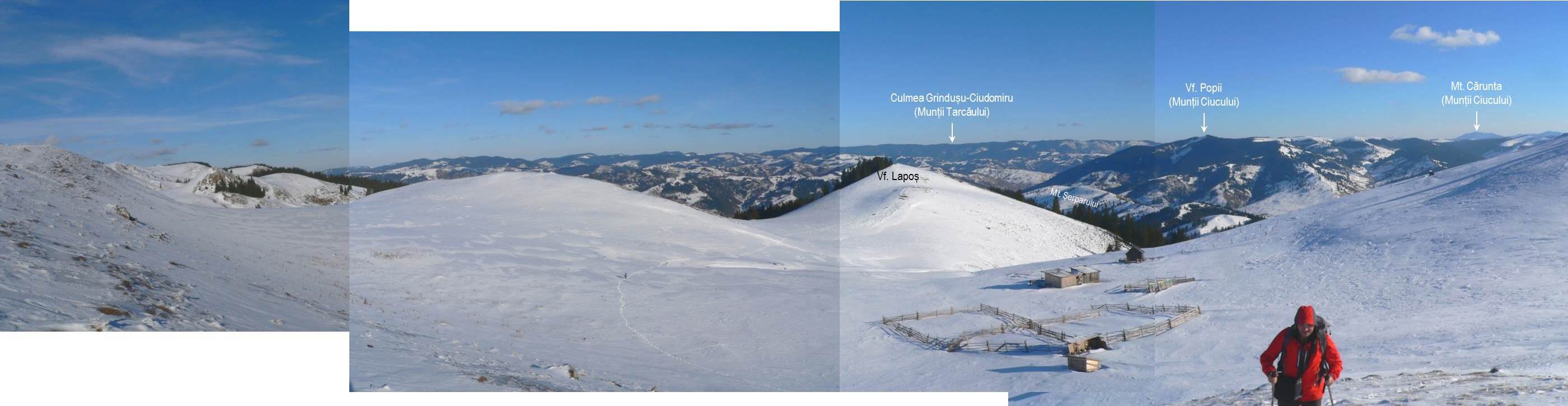 Suntem deja pe pantele Muntelui Lapos-sarok (într-o traducere apropiată contextului toponimic, Colțul Turtit/Teșit; pe o hartă din 1917 apare adaptarea, fonetică, Lăpuș).