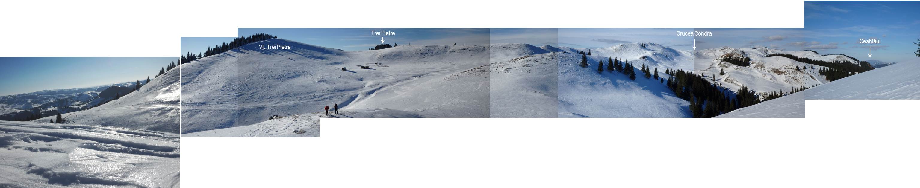 După o succesiune de trei vârfuri (primul și ultimul ocolite), separate prin șei joase, …