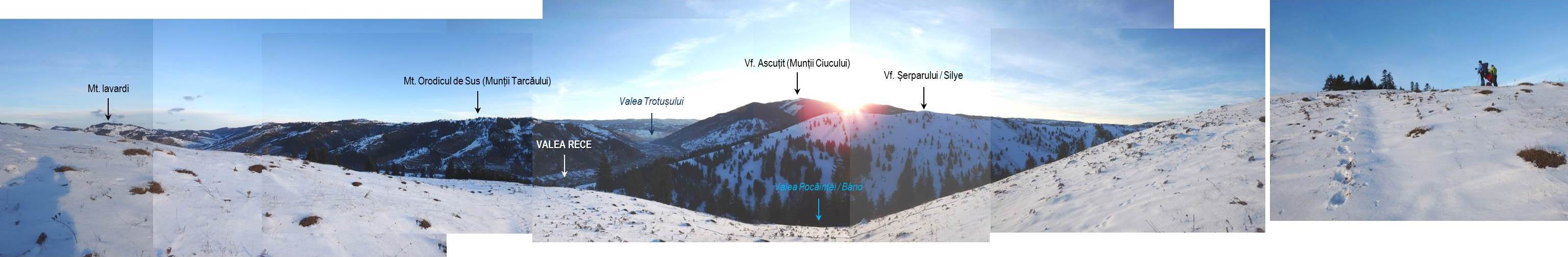 Traseu: Gura Pârâului Pocăinței (Bándpataka/Valea Rece/Lunca de Jos/HG) – Capela romano-catolică – Mt. Pocăinței (Bánd) – Mt. Colțul Turtit (Lapos-sarok) – Mt. Trei Pietre – Mt. Șerparului (Silye) – Gura Pârâului Pocăinței
