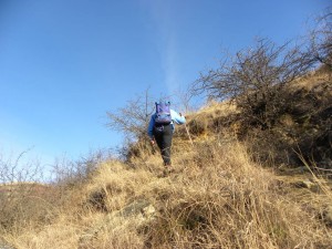 Tocmai am părăsit uliţa ce suie spre cătunul Văratici şi coborâm spre Valea Văratici şi botul Dealului Docmana,