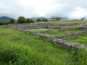 … și ale templului închinat zeiței lor protectoare, Nemesis. Dincolo de acestea se află cel mai impresionat vestigiu al orașului antic, Amfiteatrul, unde erau organizate luptele gladiatorilor. Nu-l putem vizita căci e prins în lucrări de recondiționare, restaurare și … modernizare.