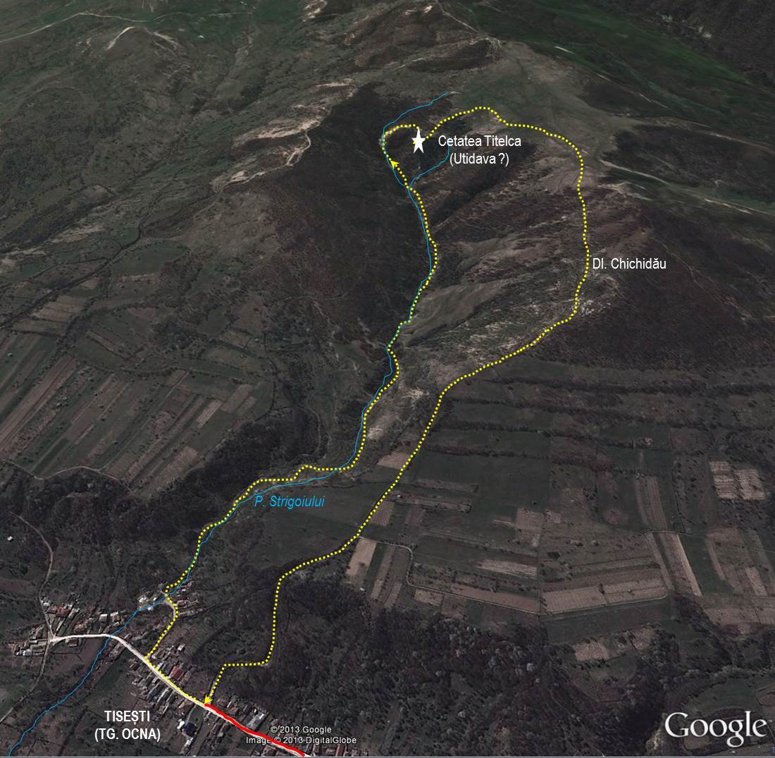 – traseu: Tisești – Valea Strigoiului – Dl. Titelca – Dl. Chichilăului – Tisești