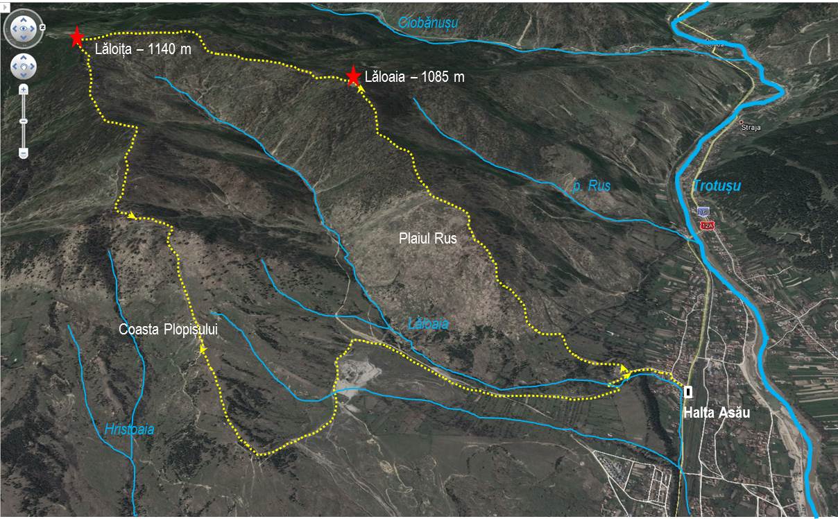 – traseu: halta Asău – Vf. Lăloaia– Vf. Lăloița – halta Asău