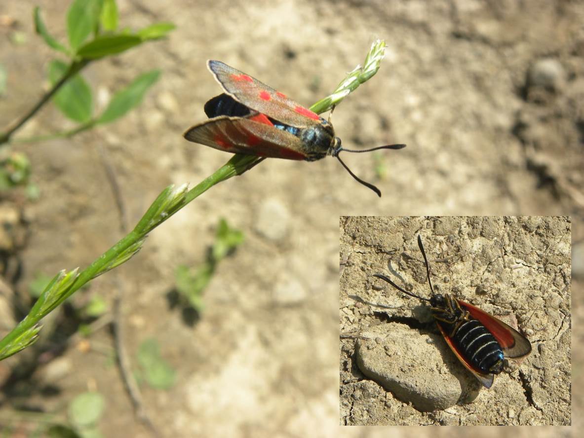 … (un alt fluture-molie, numit și “stropi de sânge”, Zygaena filipendulae/loti/viciae – numele depinzând de speciile de flori cu care se hrănesc larvele) …