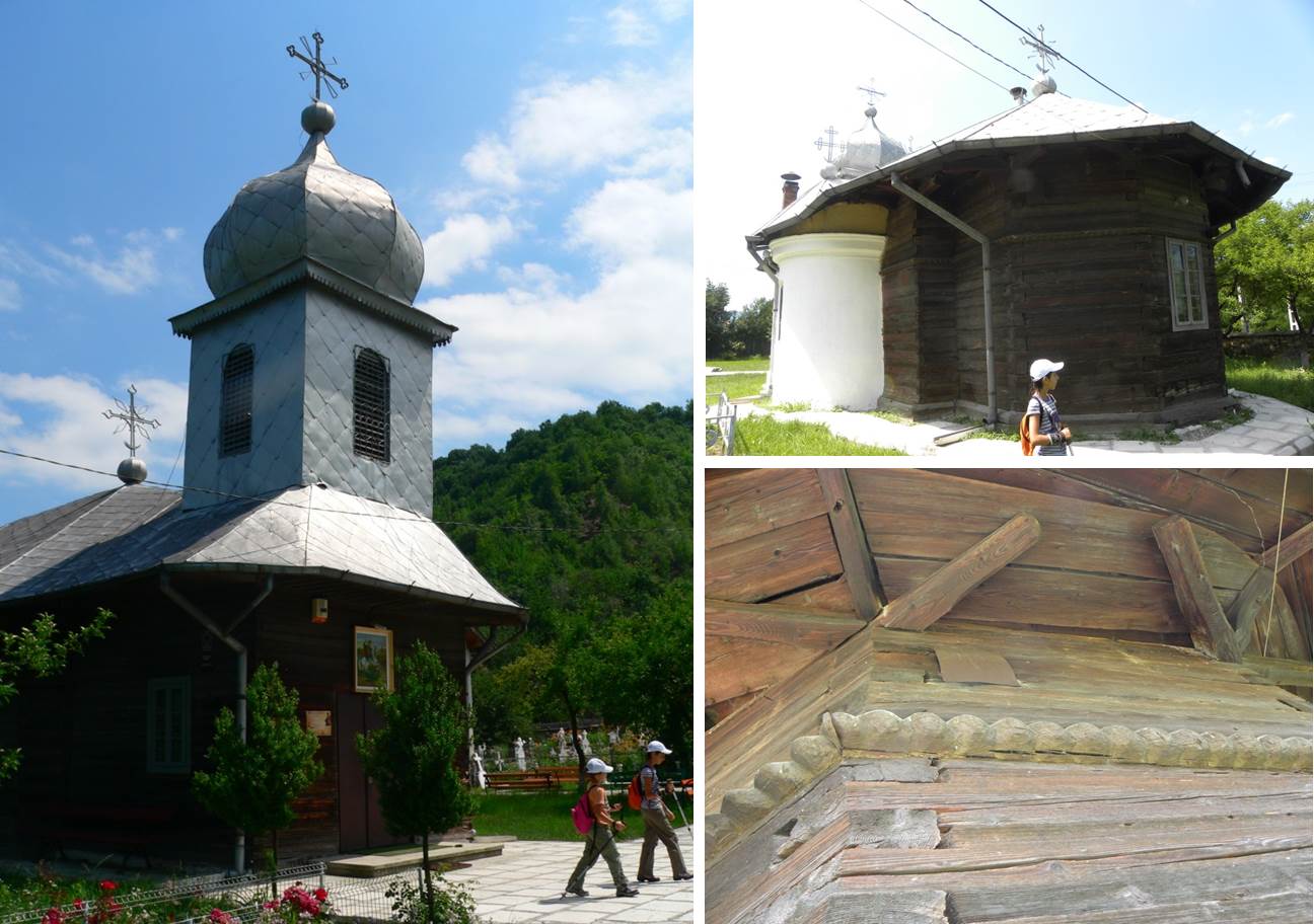 Remarcăm brâul în formă de frânghie de sub acoperiș, sculptat din lemn de tisă, …