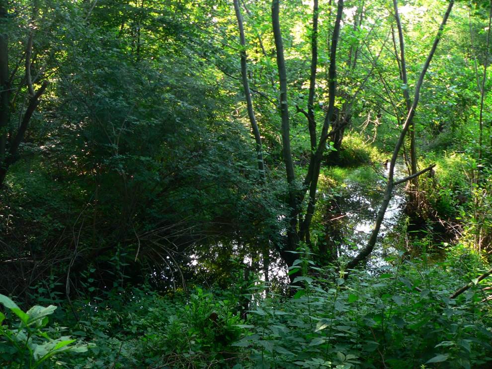 Pe latura sa din amonte, ascuns într-o râpă sub marginea pădurii, descoperim un mic lac!