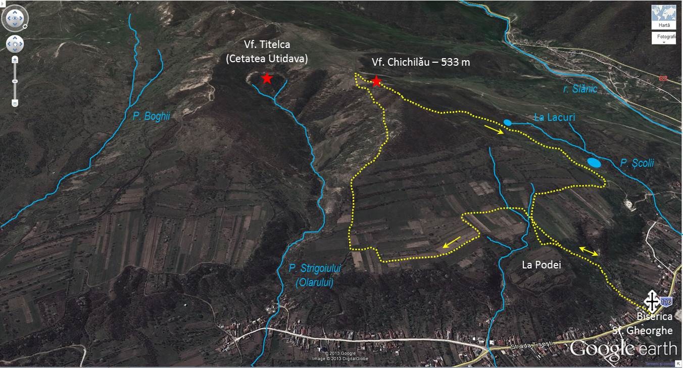 Localizăm Vârful Titelca, cu presupusa cetate a Utidavei pe creștet, lăsând pentru altă dată vizitarea sa !