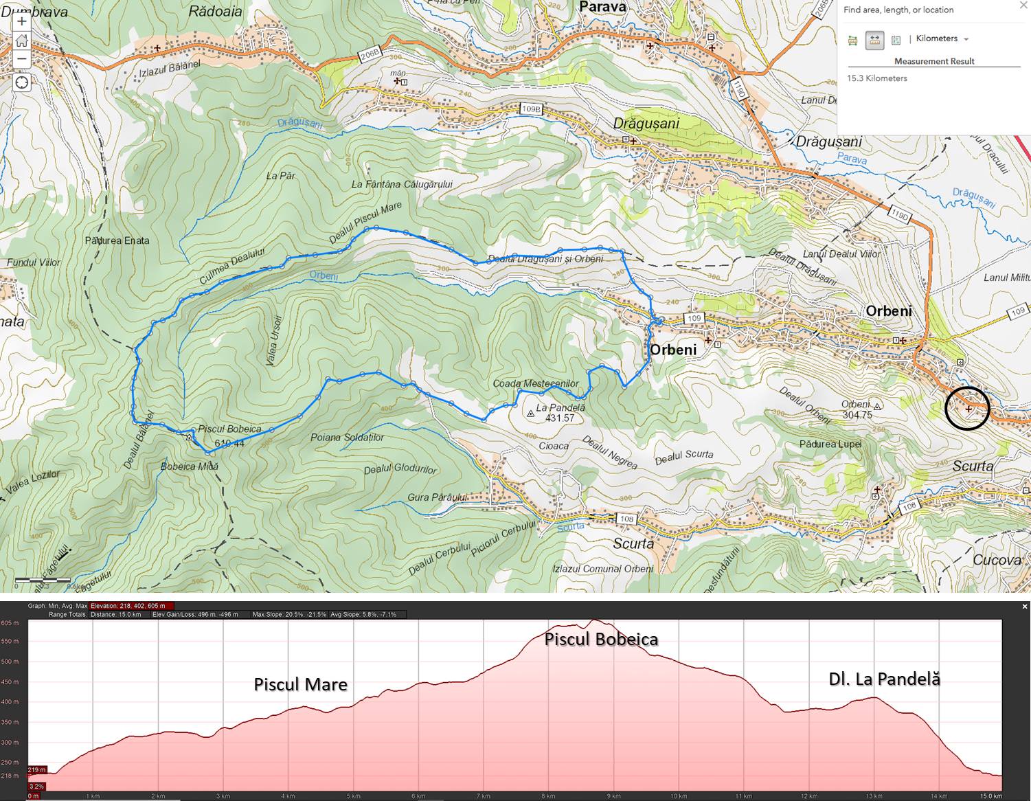 Traseu per pedes (24 noiembrie 2023): ORBENI – Dealul Orbenilor – Piscul Mare – Culmea Dealului – Piscul Bobeica – Dl. Fântâna Popii – Dl. La Pandelă – ORBENI