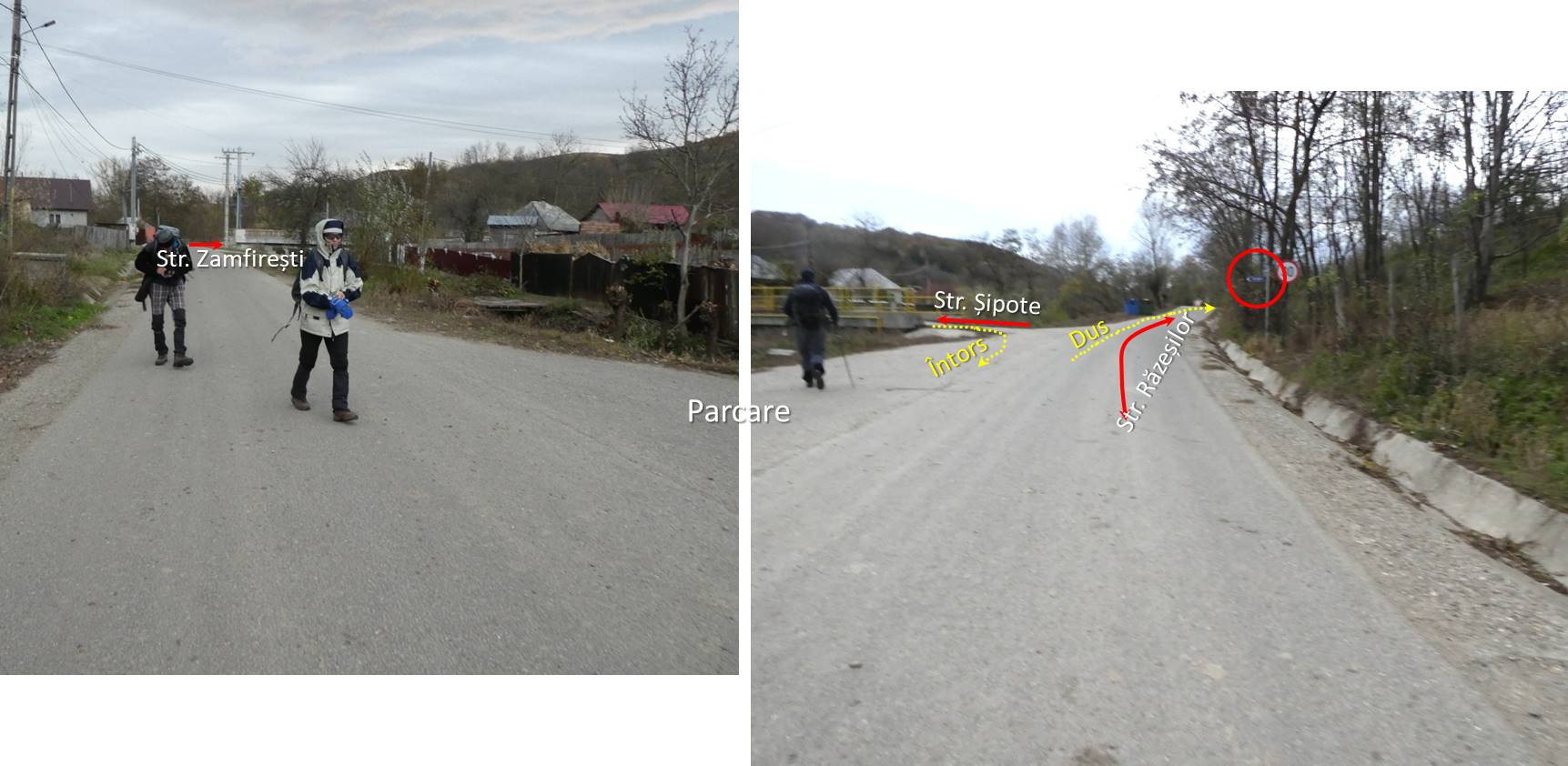 În caz contrar e preferabilă parcarea de la intersecția drumului comunal cu Strada Șipote (semnalizată de un indicator rutier).