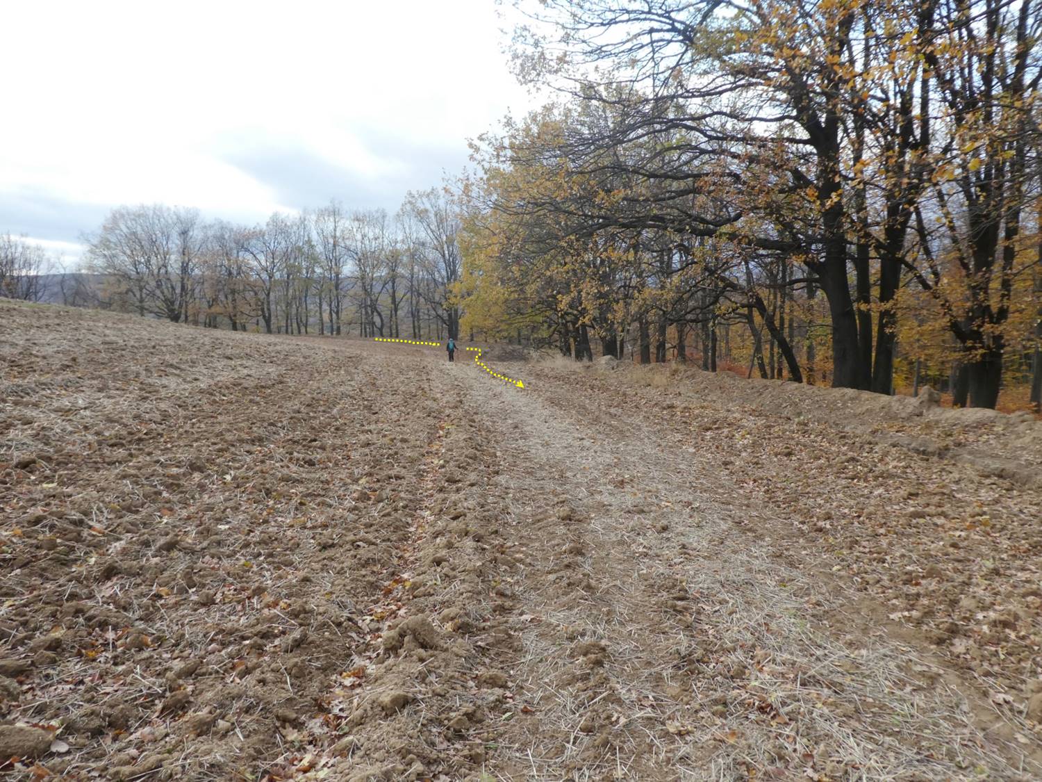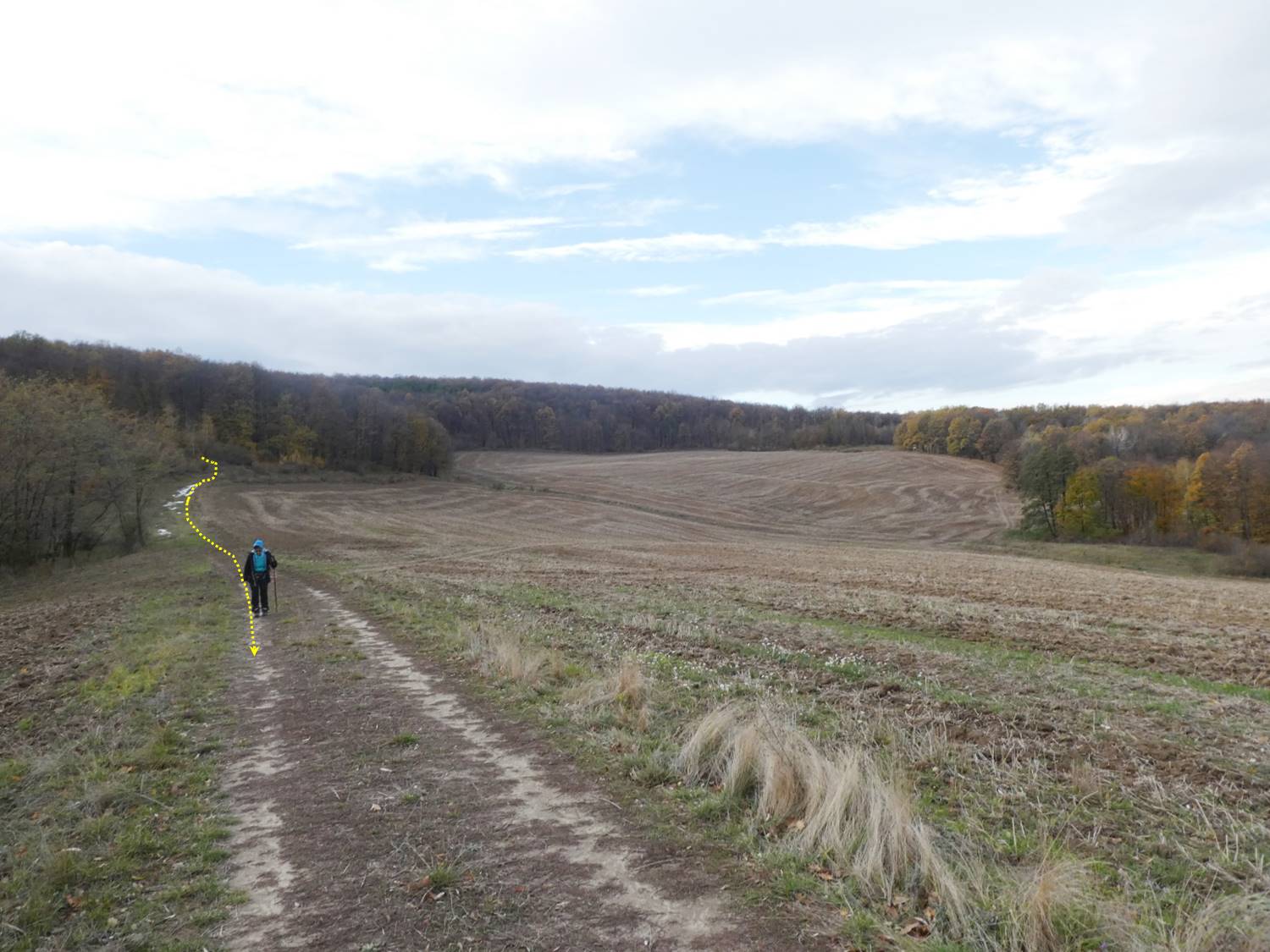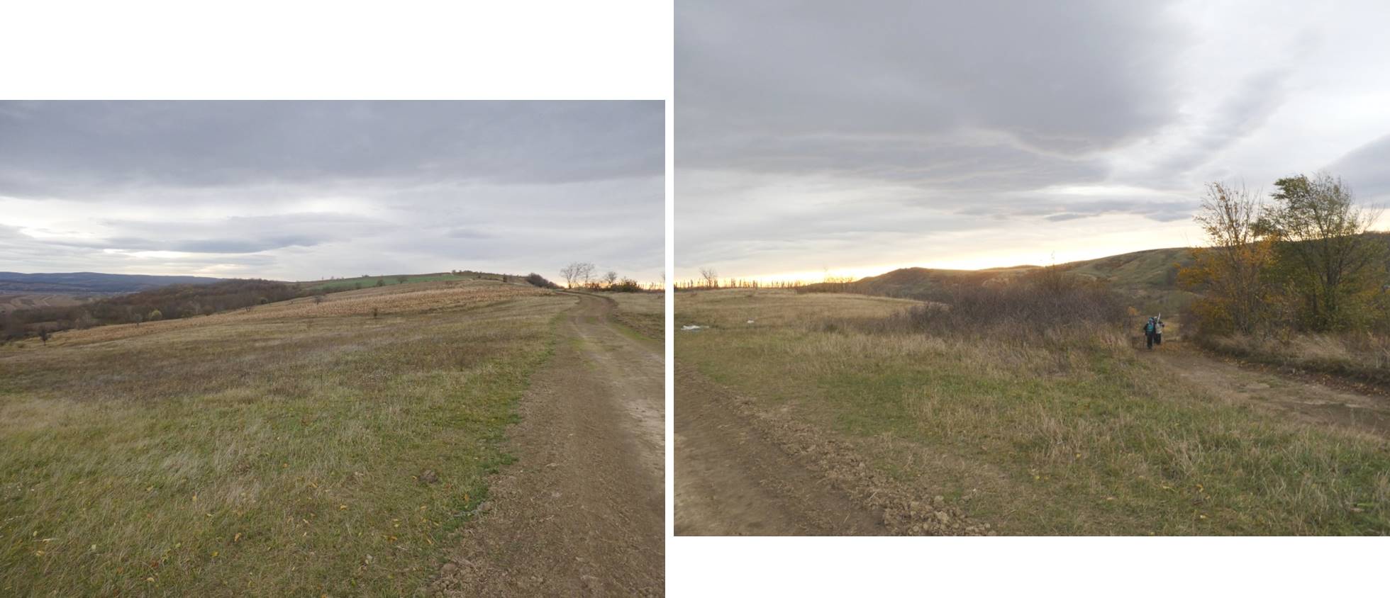 Va trebui să ajungem însă pe latura sa nordică și o facem într-un punct în care drumul se apropie cel mai mult de pădurea ce o străjuiește. Ținându-ne de marginea tarlalei vom ocoli cupola dealului La Pandelă pe sub versantul ei nordic.