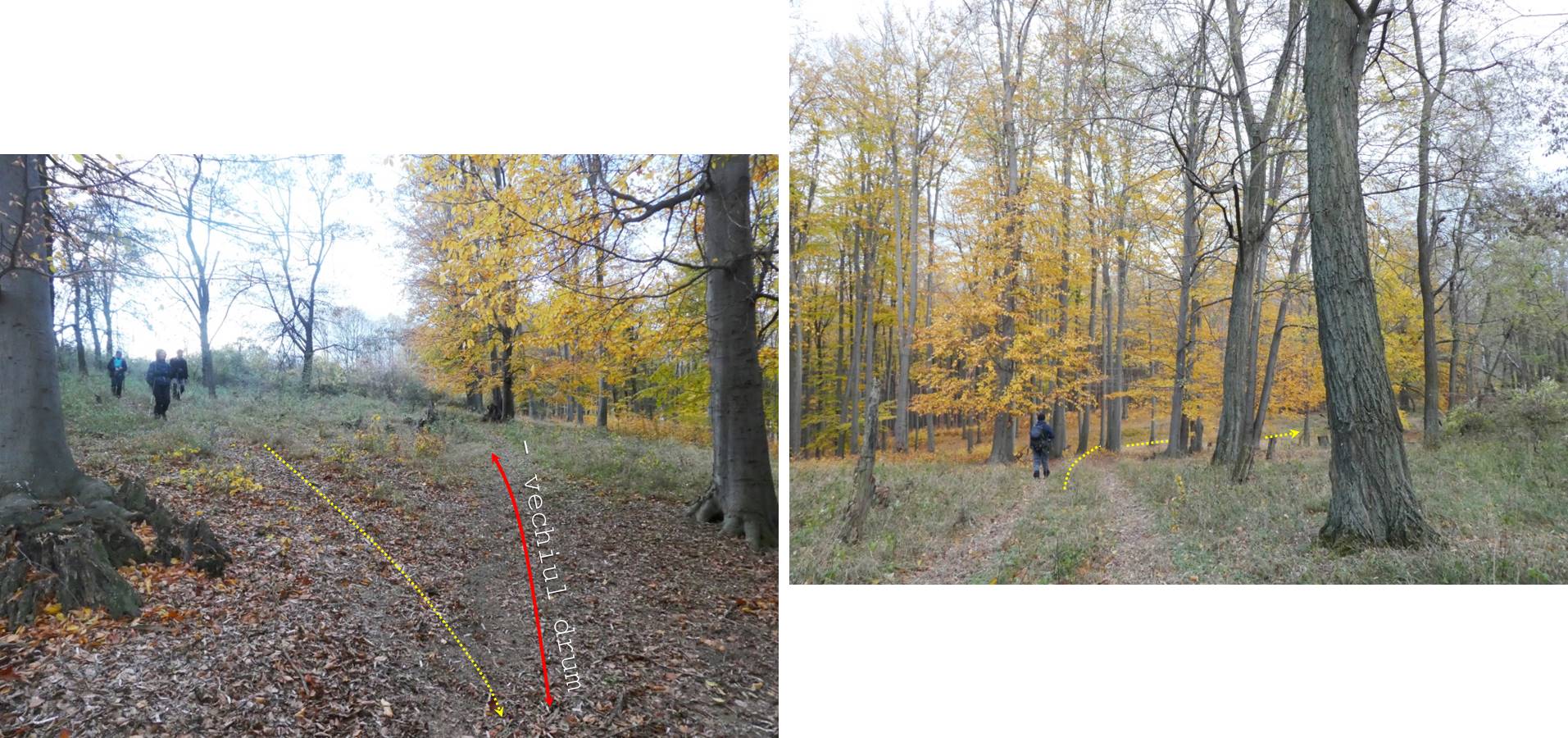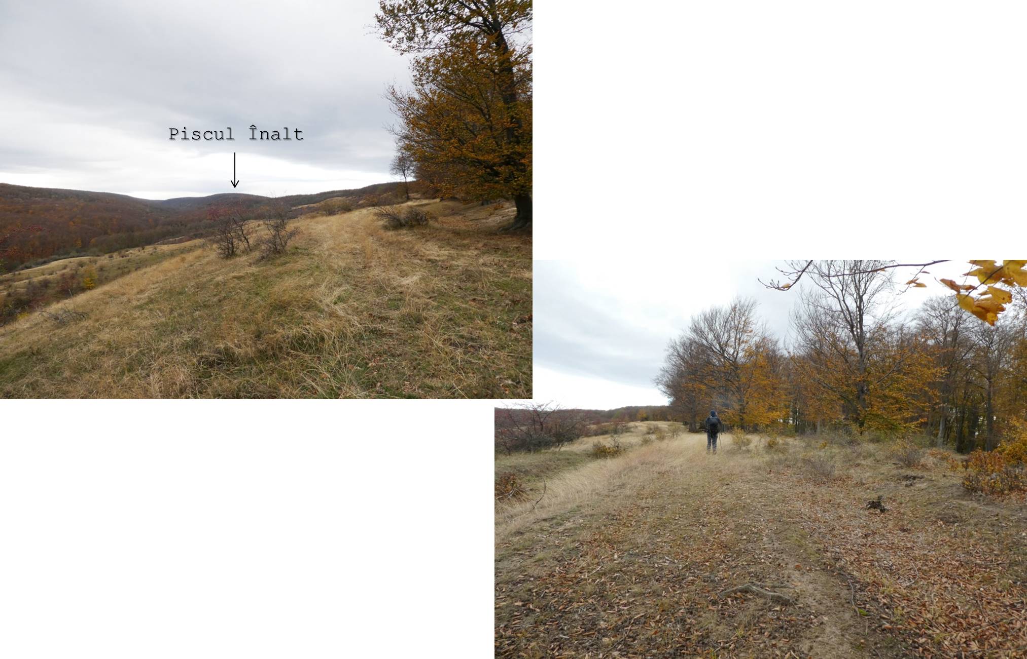 … pe care o evităm însă, dar coborâm destul de repede de pe interfluviu, pe versantul său drept, pe un șleau al vechiului drum de căruțe.