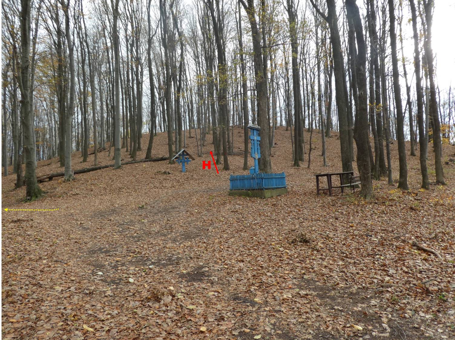 Ne ostoim însă repede, căci ajungem, în mai puțin de jumătate de oră, la Troița lui Guruiță sau, cum apare marcat locul pe Google Earth, Crucea Călătorului. De aici, ne despărțim pentru scurt timp de “H”-ul silvic și ne ținem de drumul ce ocolește de-a coasta, micul vârf sub care suntem, apoi suie ușorîn spatele lui.