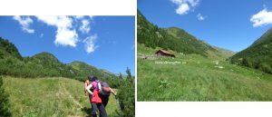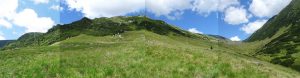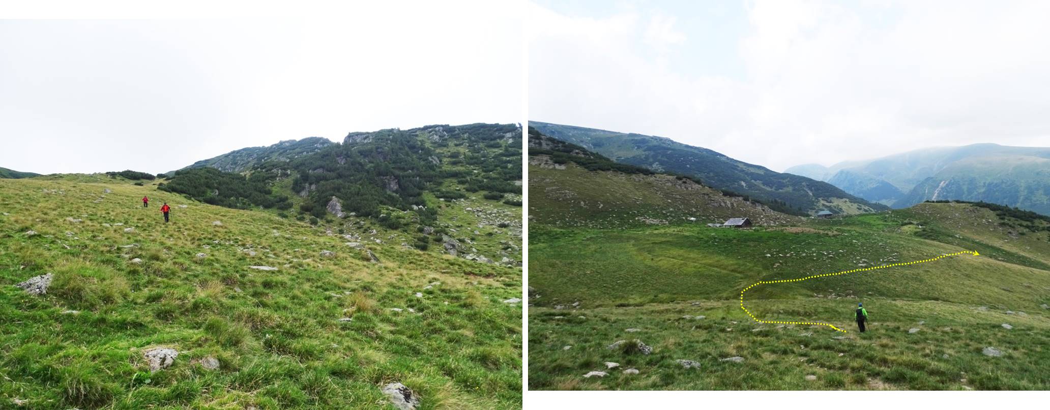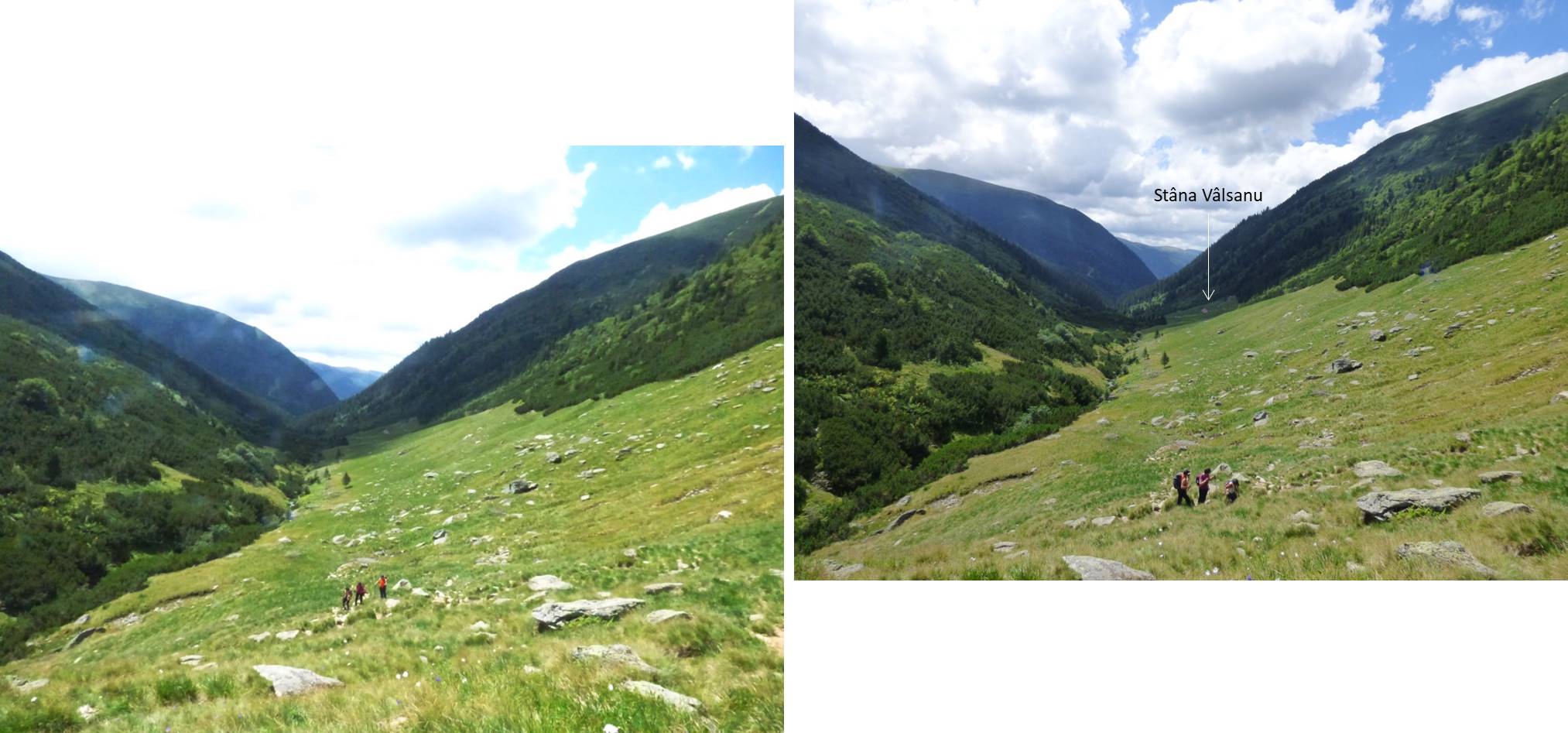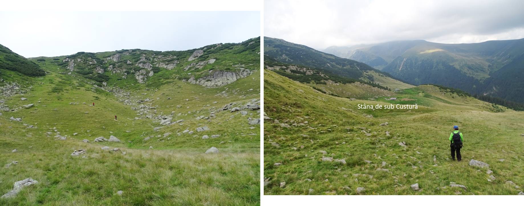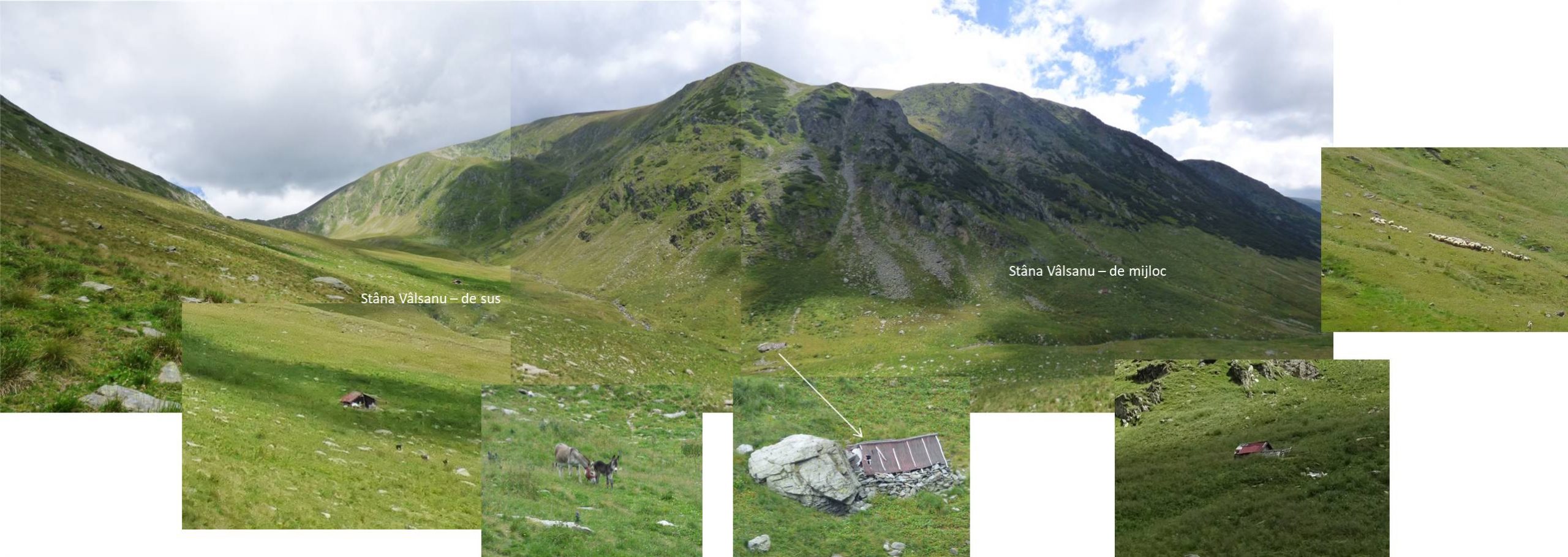 Părăsim jnepenișul și trecem în etajul pășunilor. Stâna Vâlsanu (de jos) e părăsită !