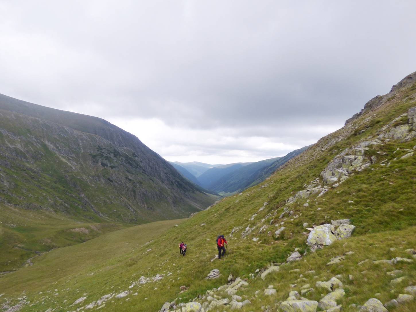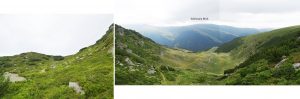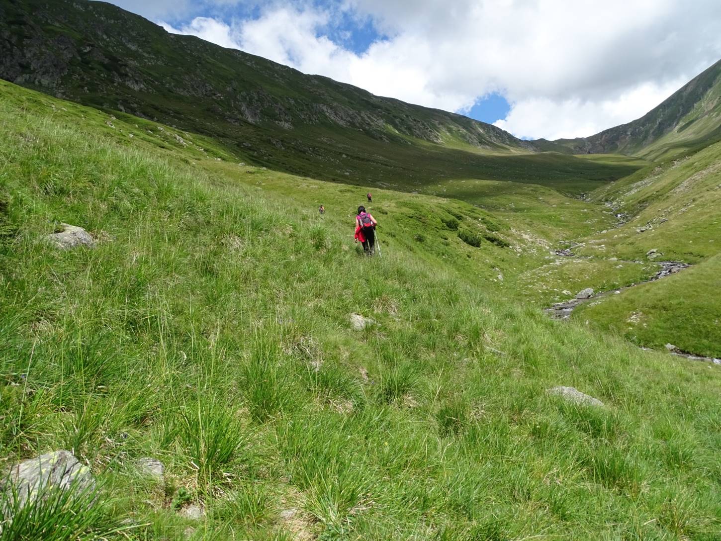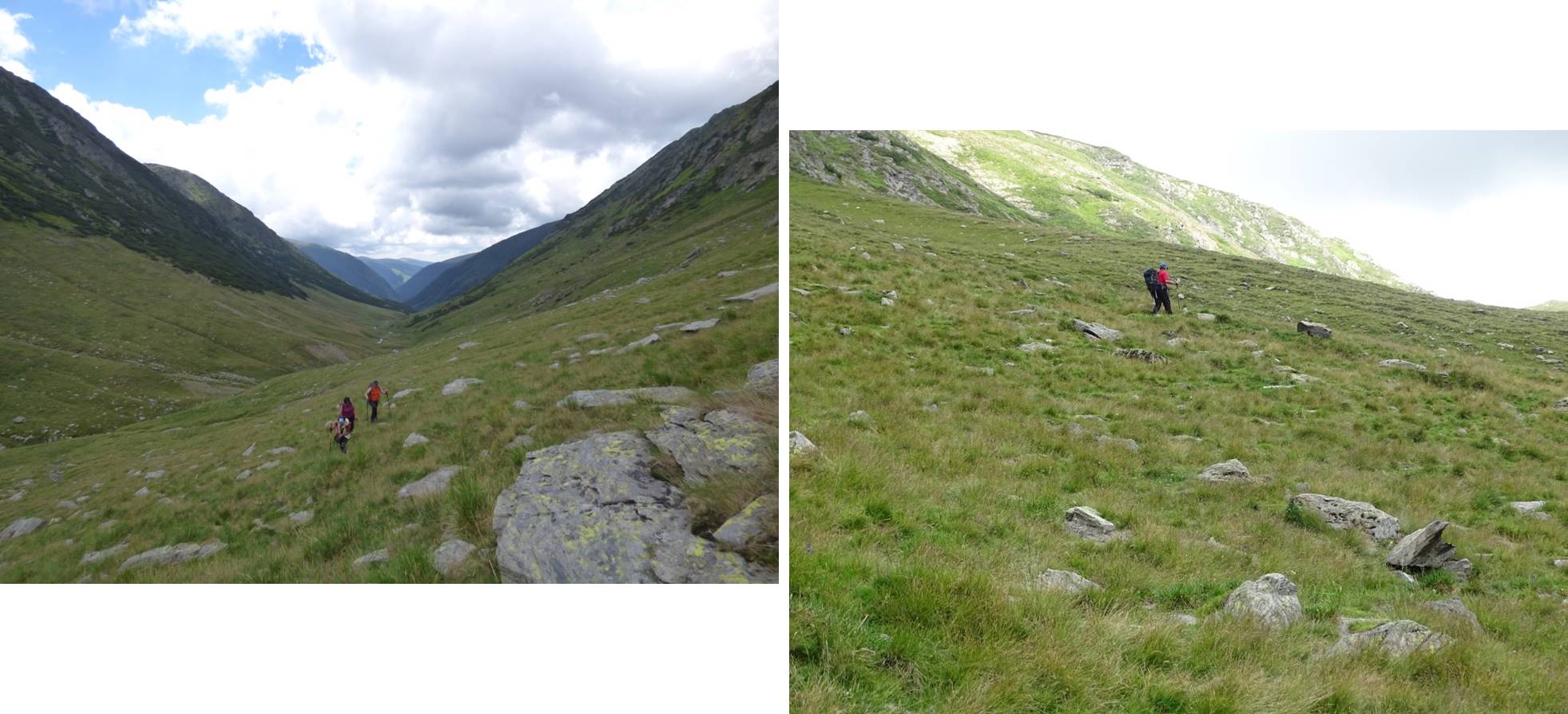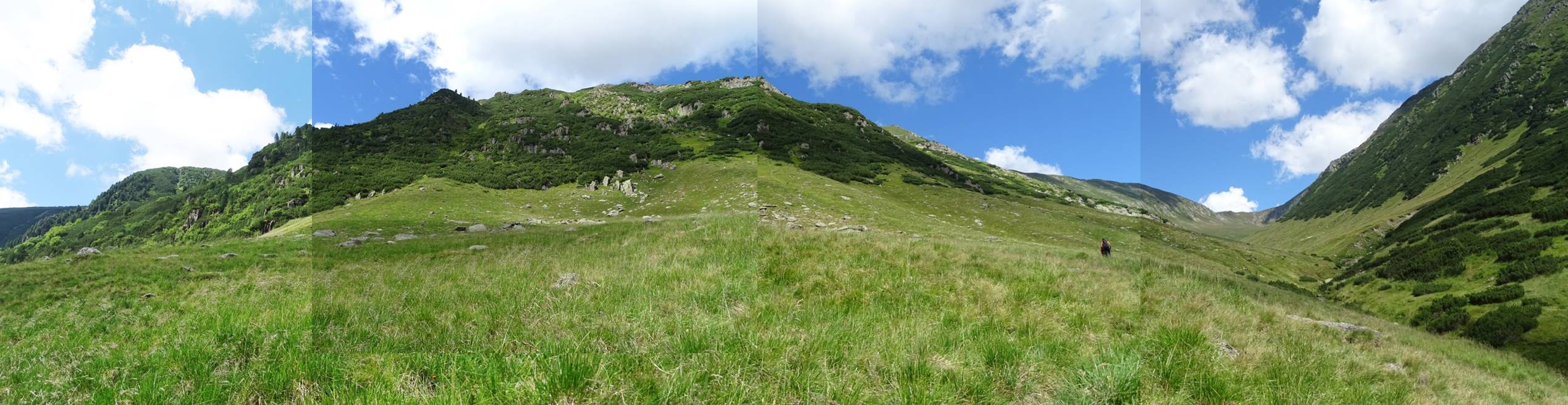 Printr-o mică șa trecem pe versantul estic al culmii, …