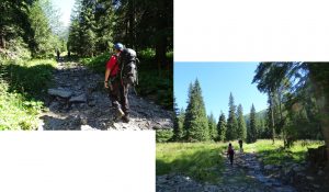 Trecem printr-o poieniță – bun loc de popas pentru gustarea de dimineață – și imediat apoi părăsimm definitiv drumul care suie, undeva, spre o tăietură, noi cotind spre dreapta, …