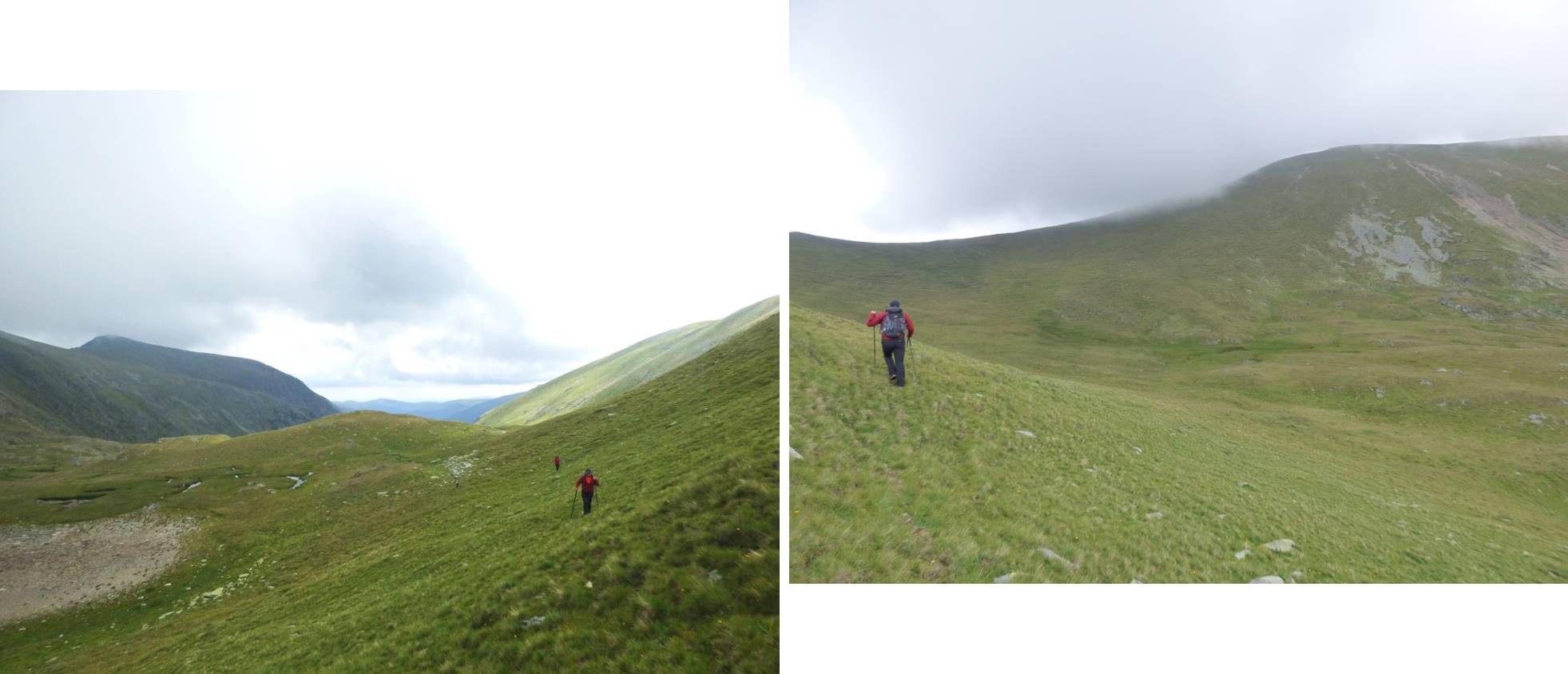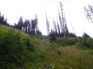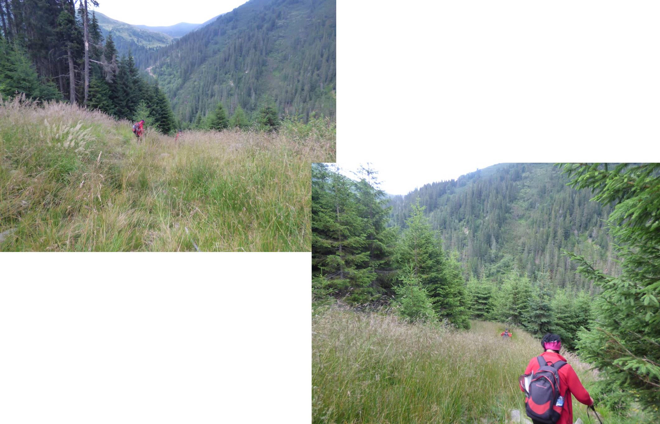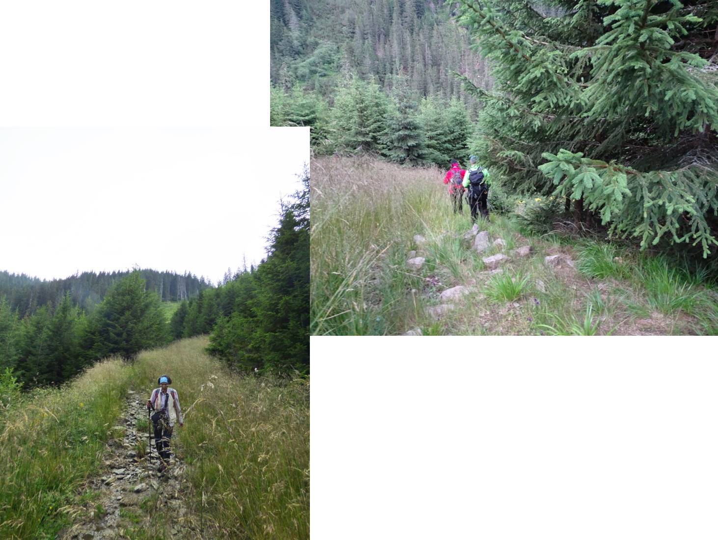 … panta se mai liniștește apoi, iarba e mai mare, pădurea afectată de tăieri, iar poteca tot mai neclară.