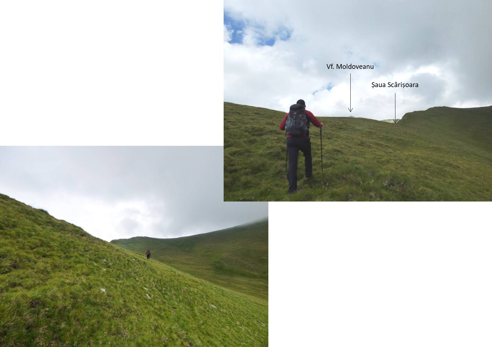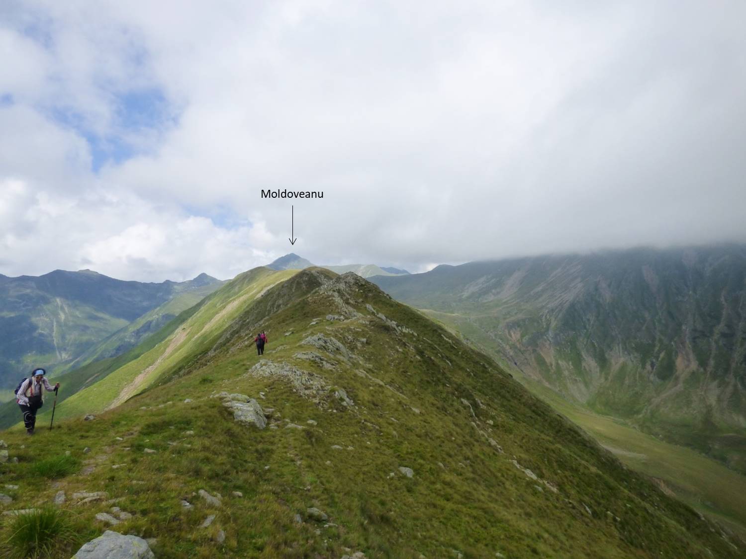 … ne îndreptăm spre Șaua Scărișoara. De departe, ne cheamă privirile, Moldoveanu !