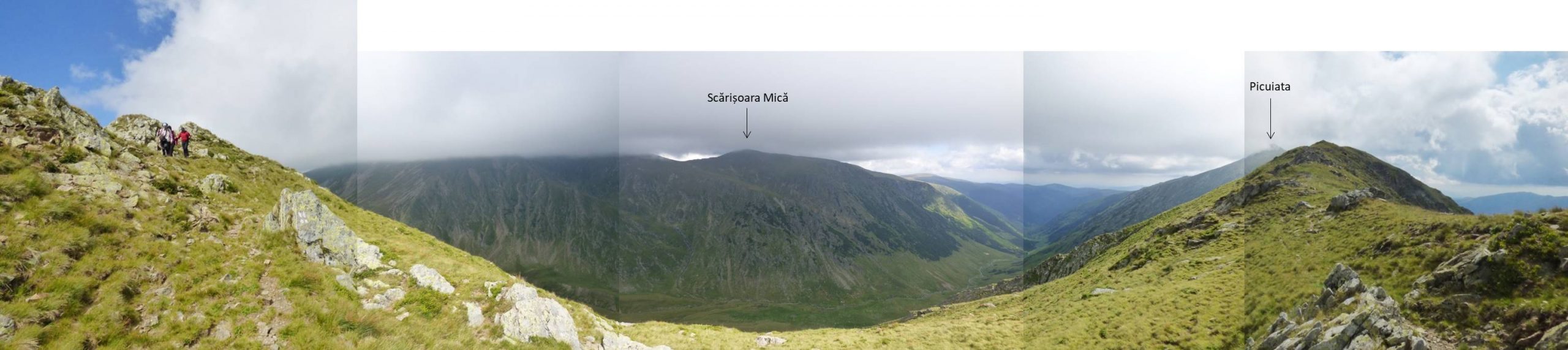 Ocolim și vârful de vizavi, dar pe versantul său vestic, bucurându-ne, astfel de priveliști spre crestele Făgărașilor privind peste valea Izvorul Mircii !
