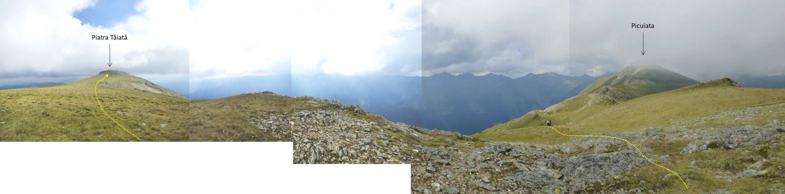 Pe Culmea Picuiata, numită și Muntele Coastele Mari; încălecăm vârf după vârf, …