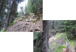 Un timp – vreo 20 de minute – poteca poate fi urmărită ușor – zdrumicată și despletită larg de pietre…