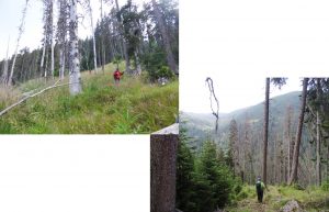 Pentru puțin timp, căci lăsăm în urmă etajul molidului și ieșim, oarecum la lumină, în etajul jneapănului; …