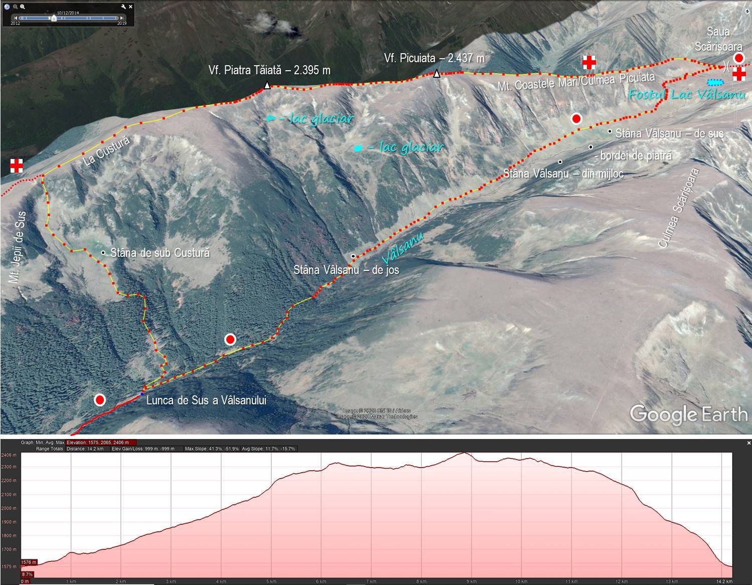 Traseu (2 august 2020): Lunca de Sus a Vâlsanului – Valea Vâlsanului – Căldarea Vâlsanului – Culmea Picuiata – Vf. Picuiata – Vf. Piatra Tăiată – La Custură – Lunca de Sus a Vâlsanului